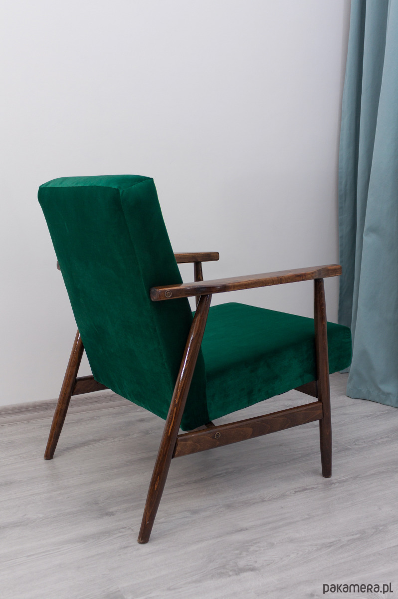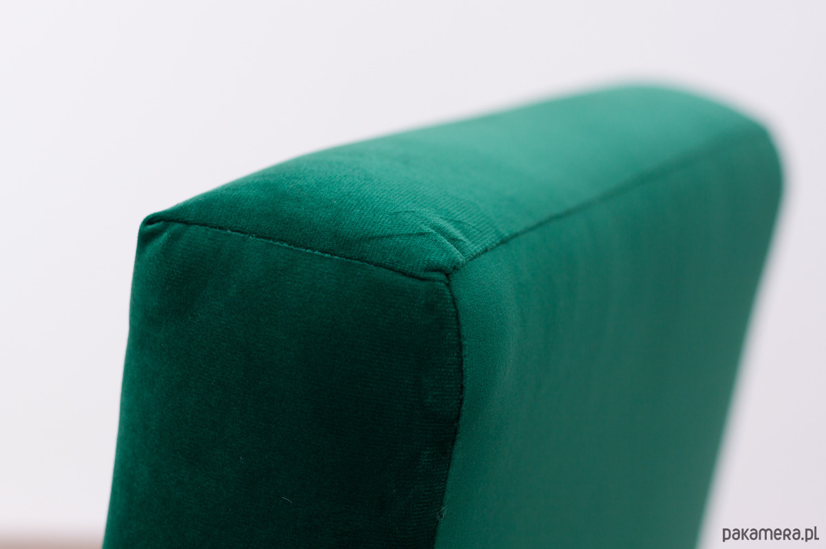 • wysokiej jakości plusz w modnym kolorze butelkowej zieleni – idealnie pasuje np. do pokoju dziennego, biura,