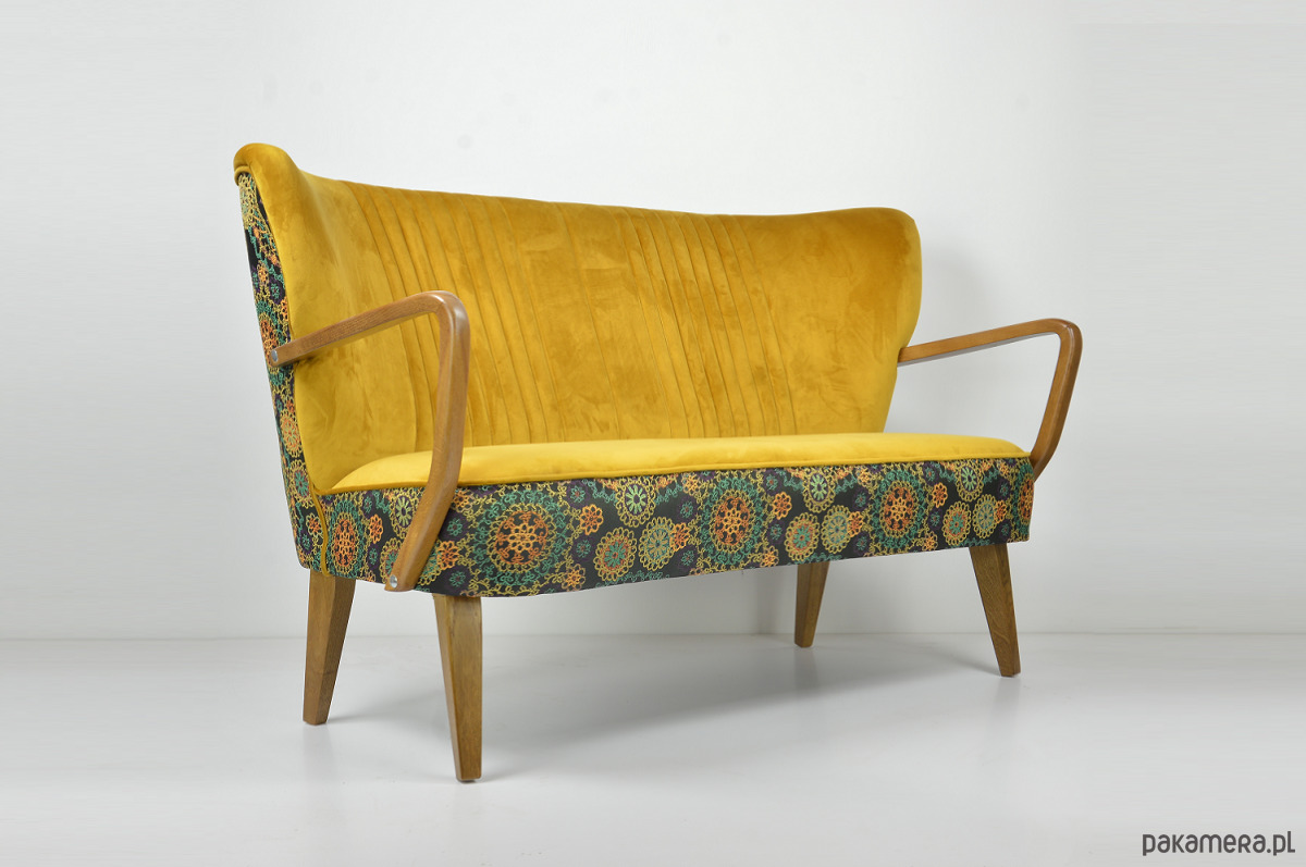 Sofa 2 osobowa typu cocktailowa. Inspirowana wzorem z lat 60-tych.