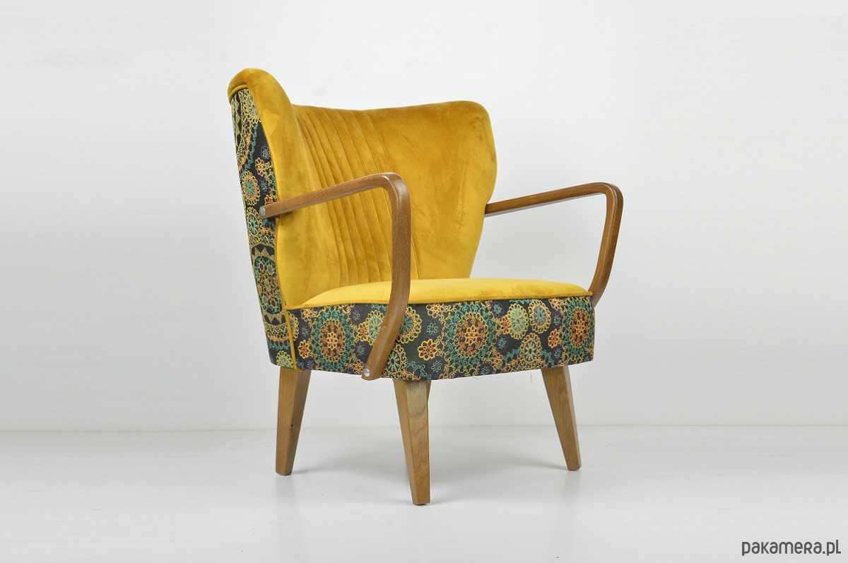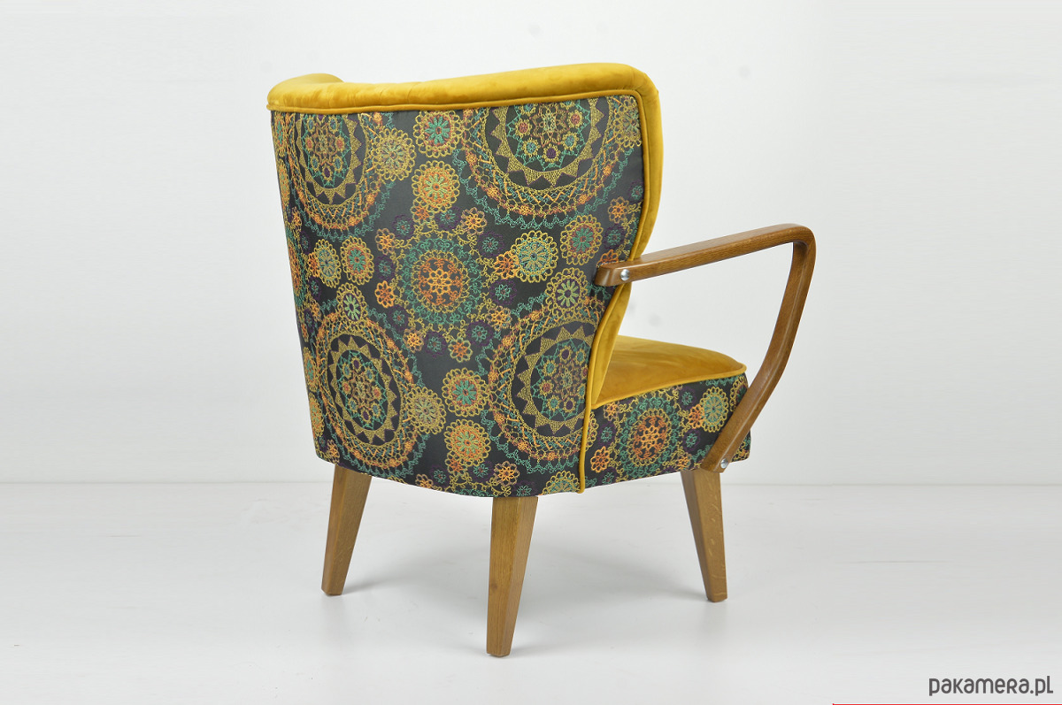 Dębowe podłokietniki oraz nóżki.