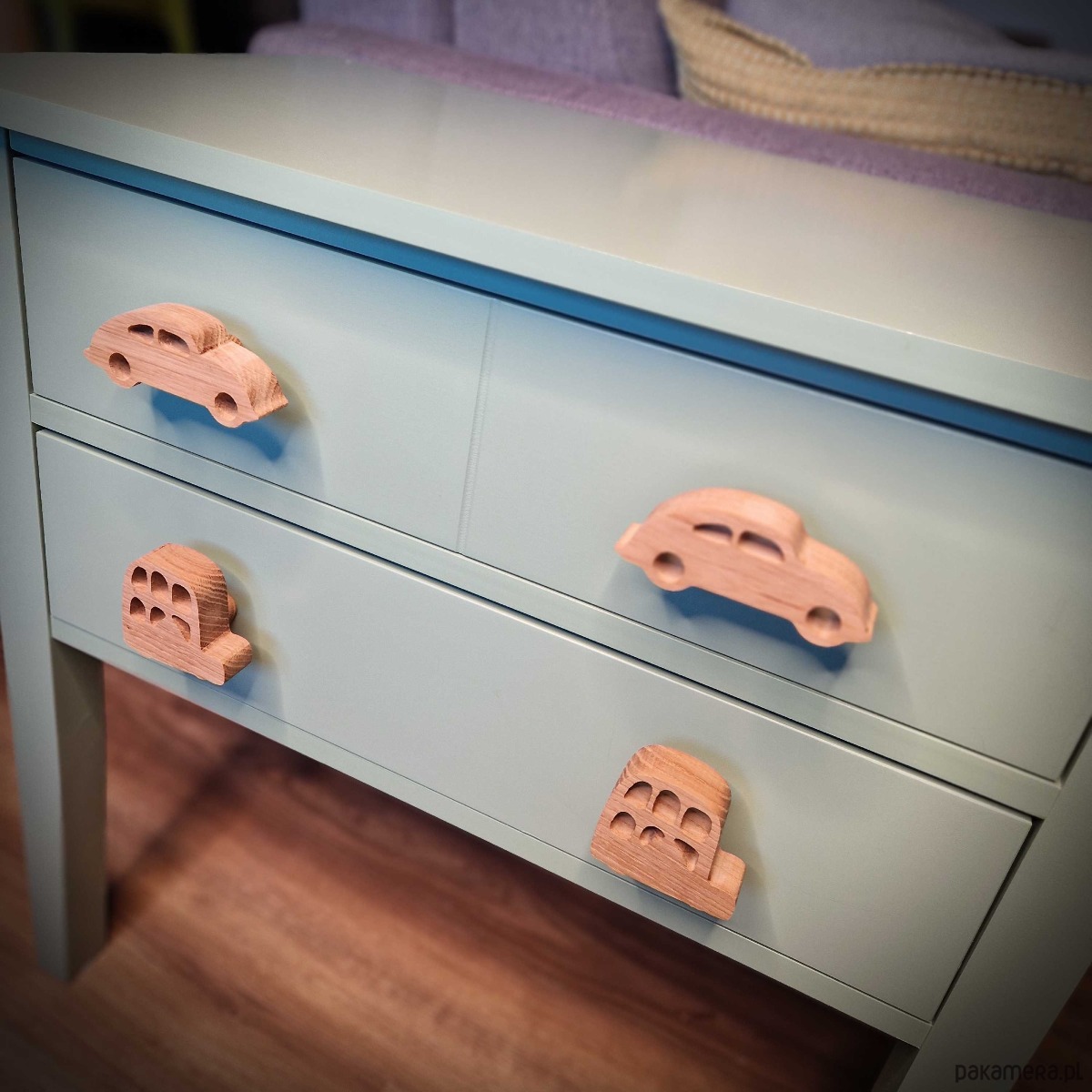 Drewniane gałki do mebli, auto, autko