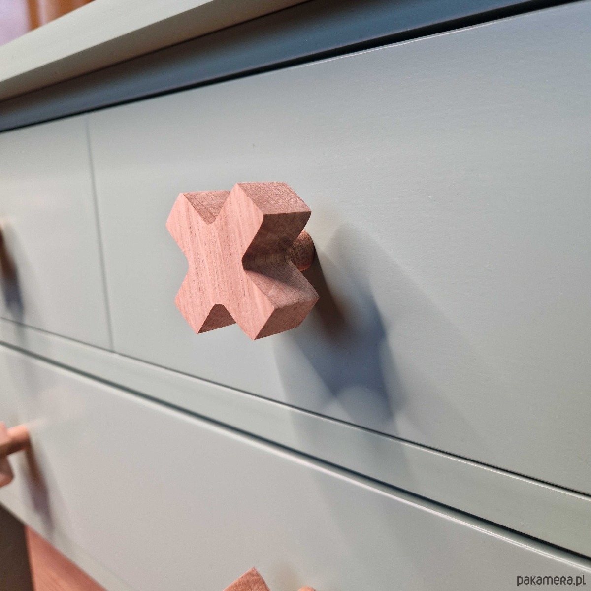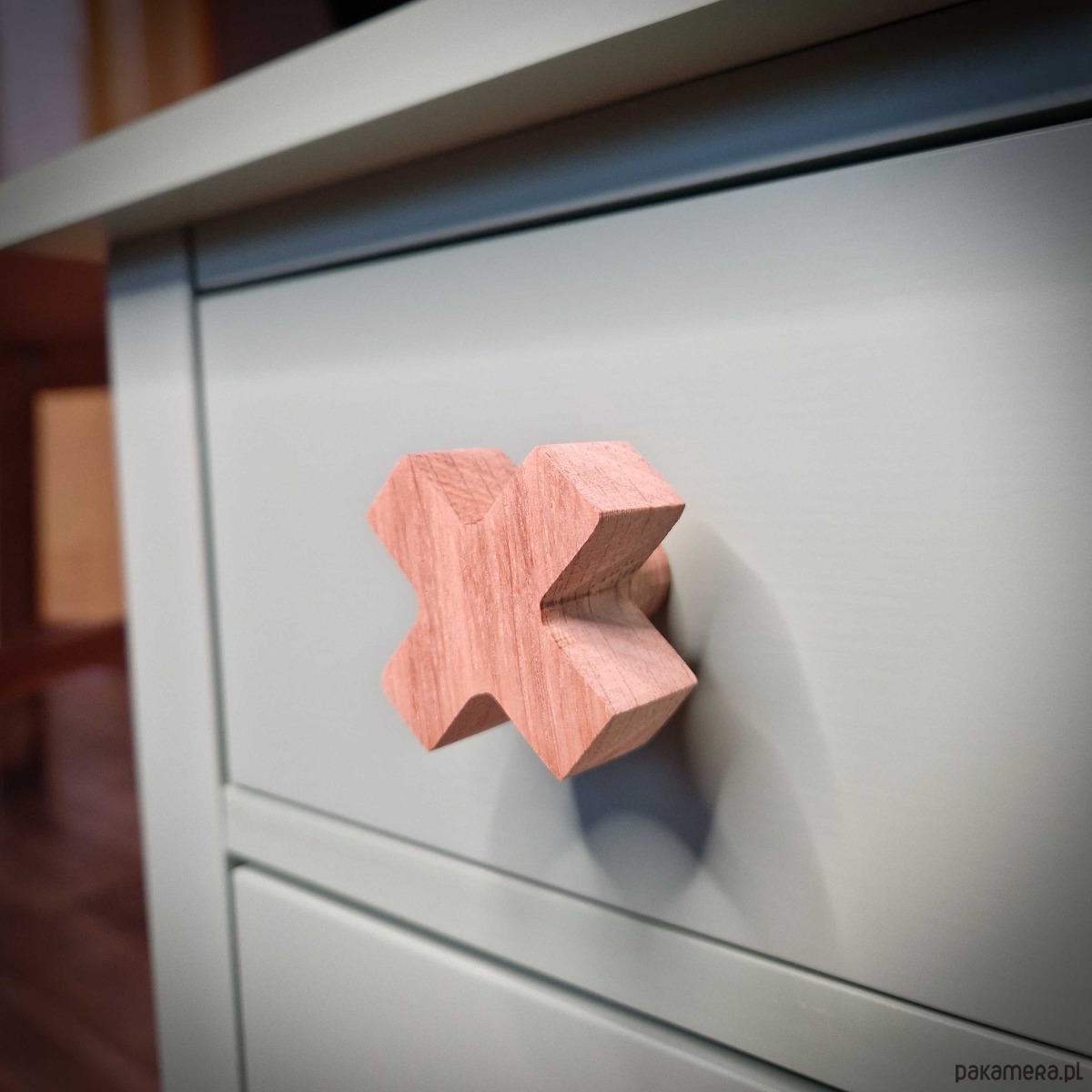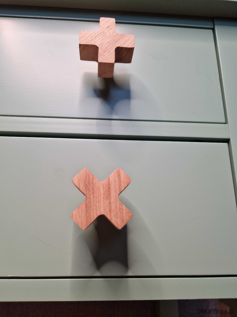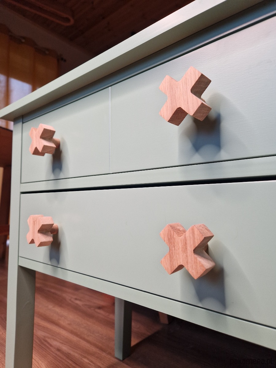 Drewniane gałki do mebli, krzyżyk, iks plus