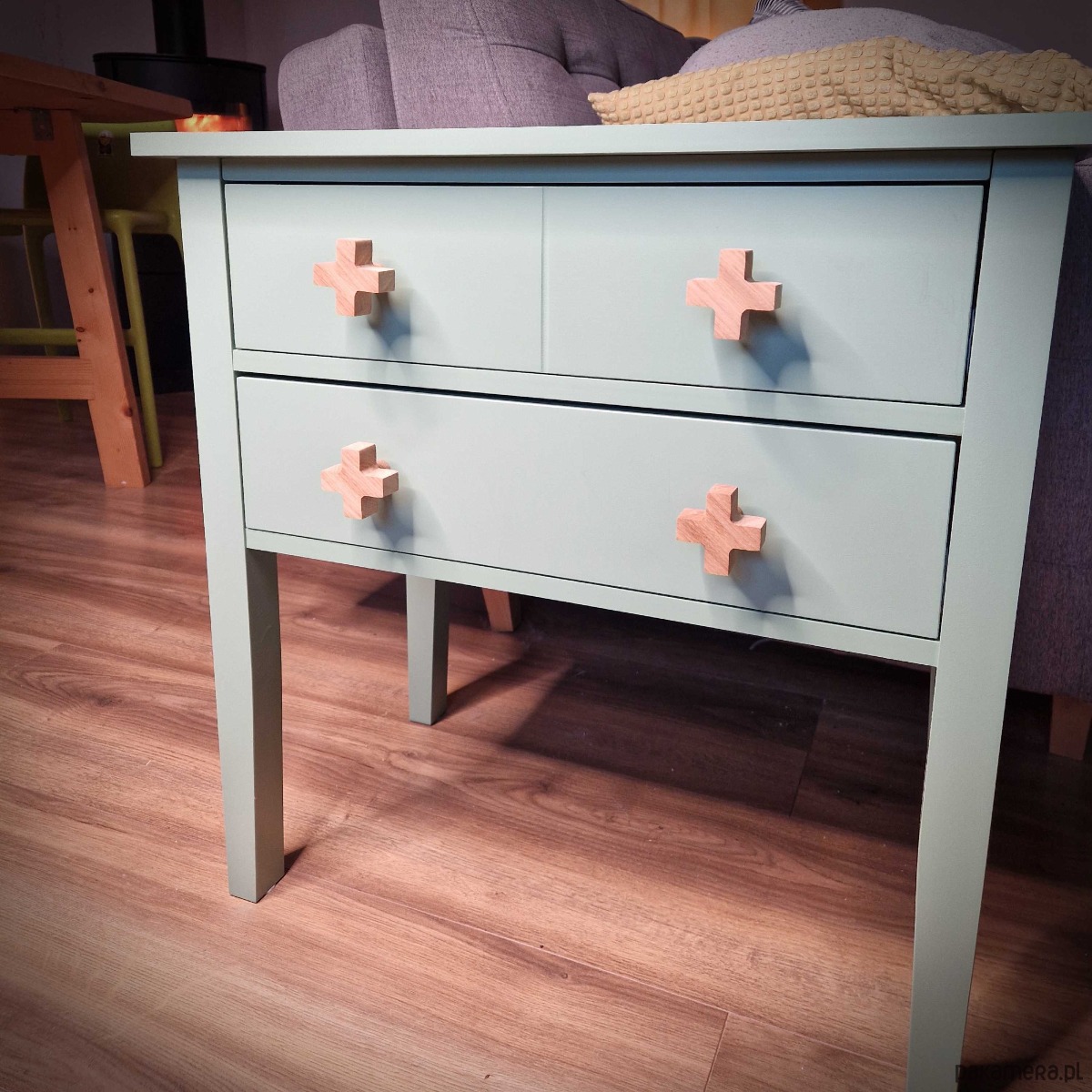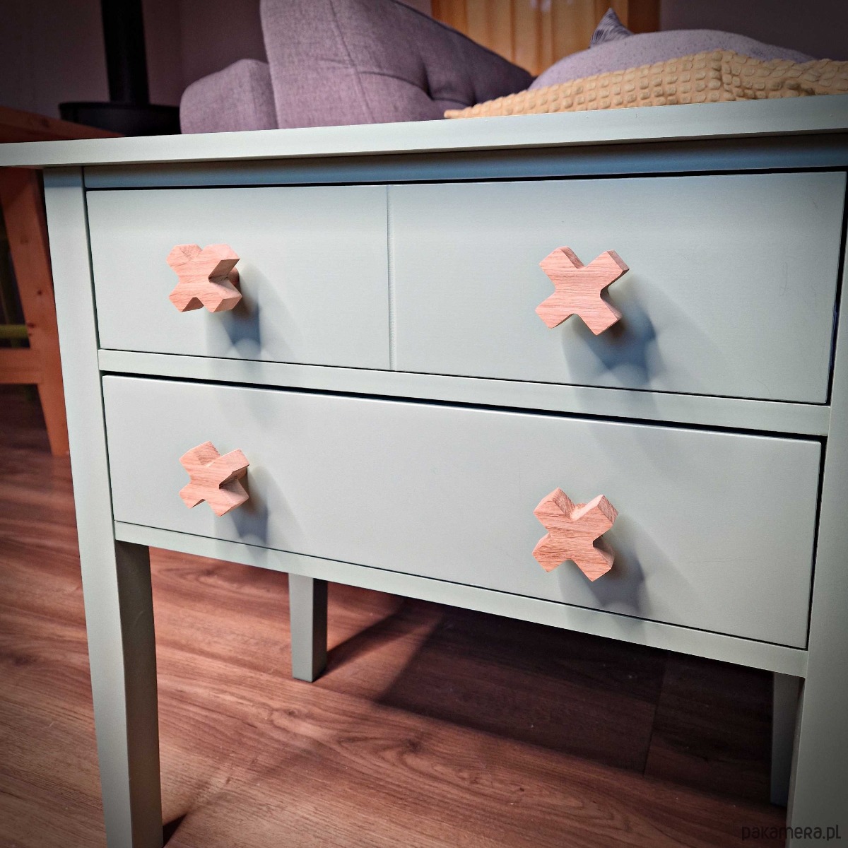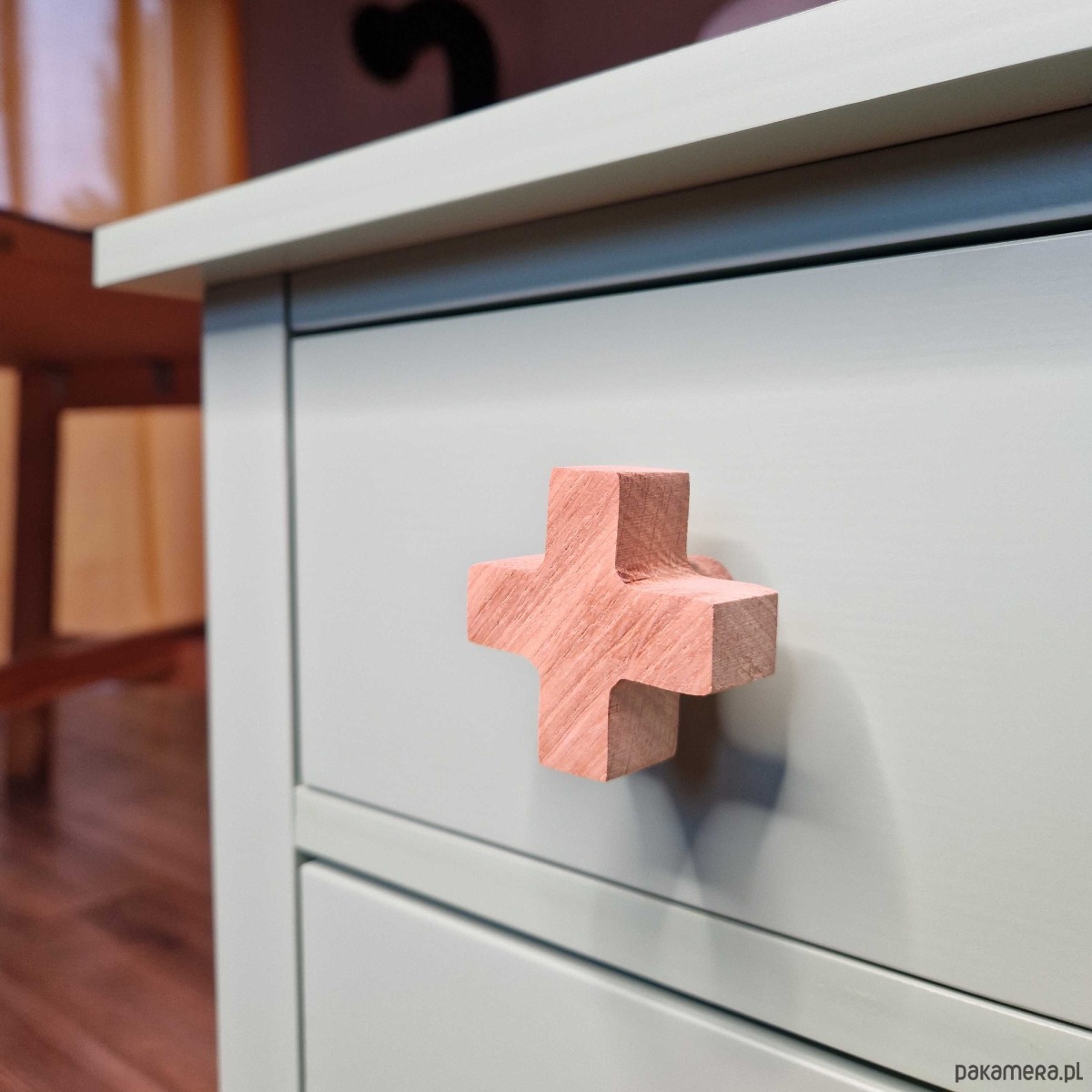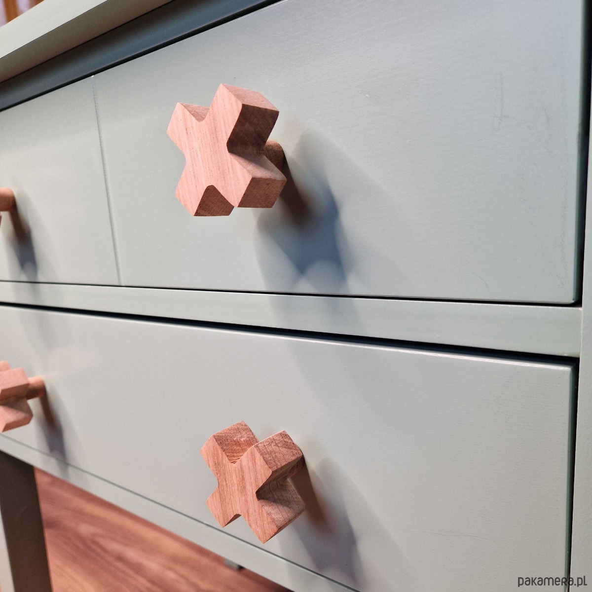 Drewniane gałki do mebli, krzyżyk, iks plus