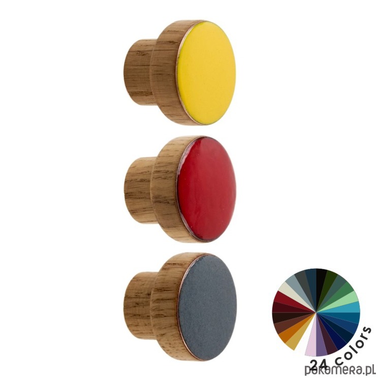 Drobna dębowa gałka zdobiona emaliowaną miedzią.