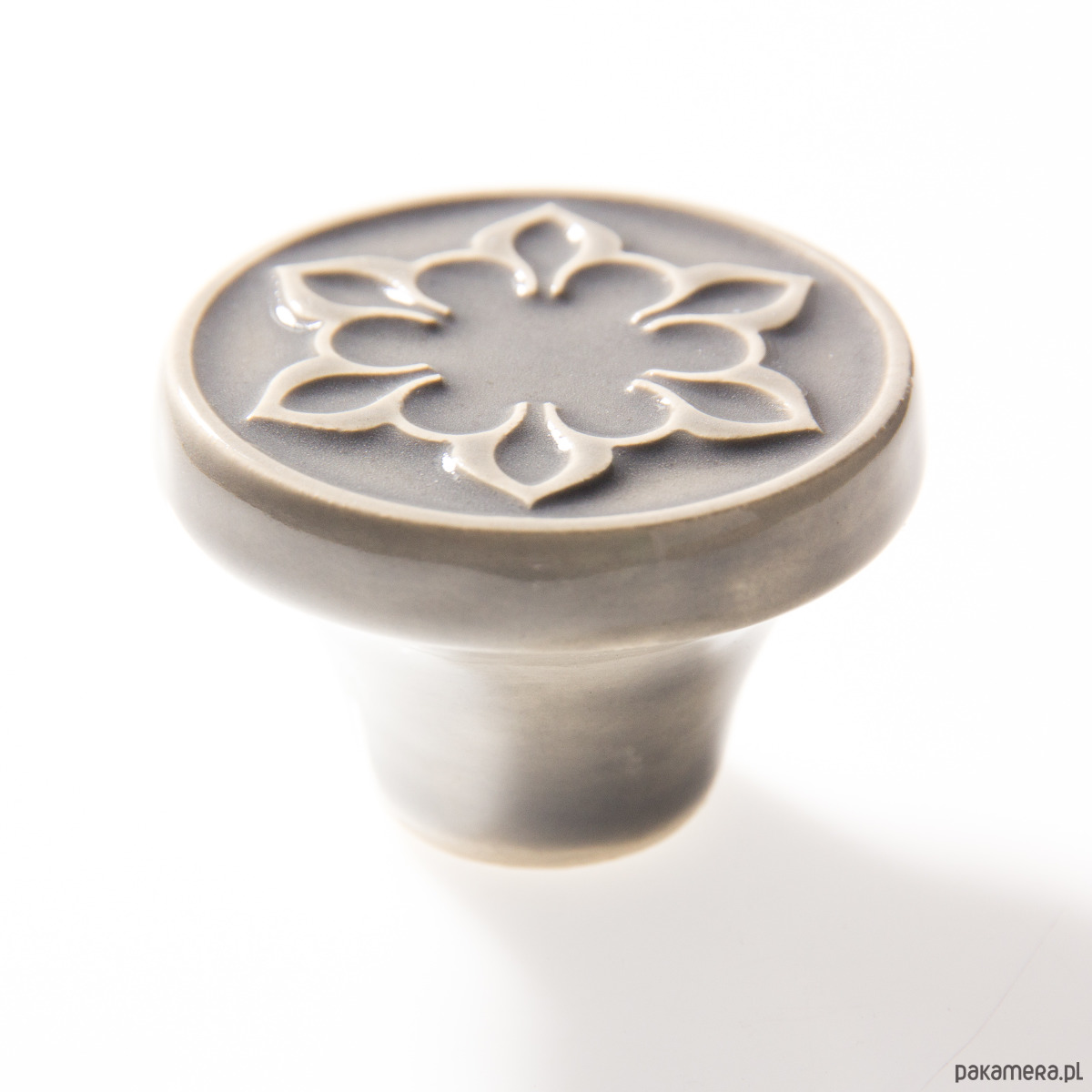Ceramiczne gałki do mebli - ręcznie wykonane, ornamentowe, wg własnego projektu. Wykonane z jasnej gliny, pokryte błyszczącym szkliwem, wypalone dwukrotnie w wysokiej temperaturze.