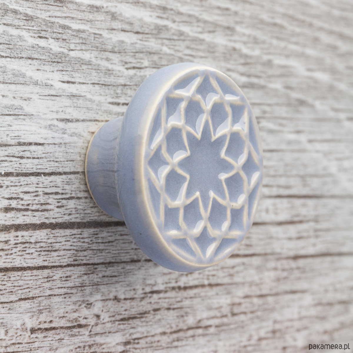 Ceramiczne gałki do mebli - ręcznie wykonane, ornamentowe, wg własnego projektu. Wykonane z jasnej gliny, pokryte błyszczacym szkliwem, wypalone dwukrotnie w wysokiej temperaturze.