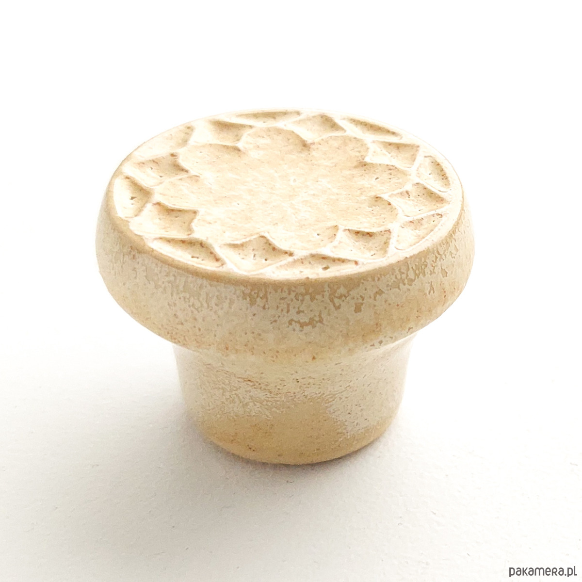 Ceramiczna gałka do mebli - ręcznie wykonana, ornamentowa, wg własnego projektu. Wykonana z jasnej gliny, pokryta satynowym szkliwem, wypalona dwukrotnie w wysokiej temperaturze.