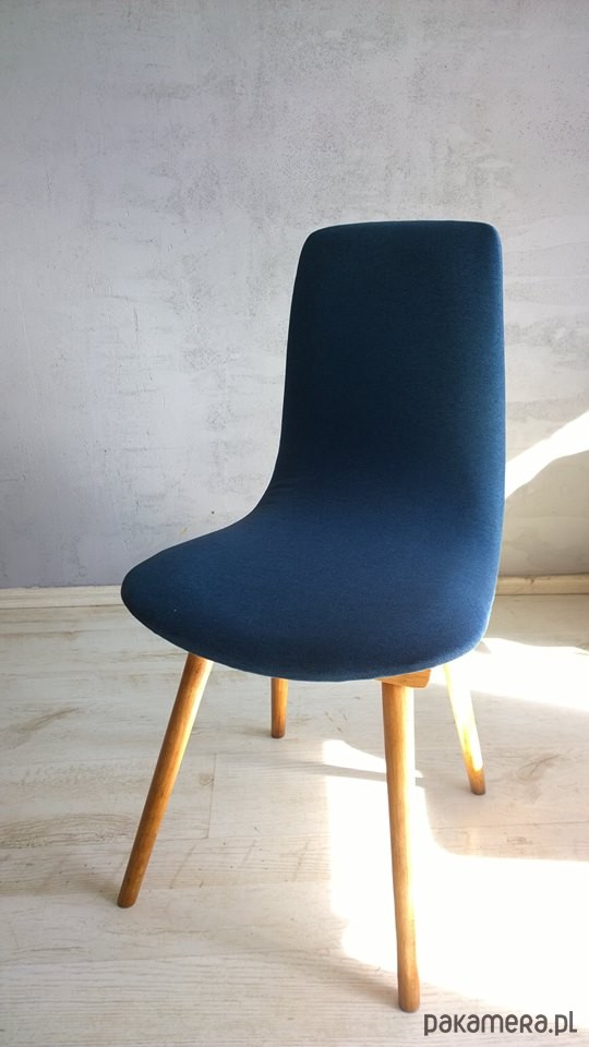 Piękne krzesło na surowej podstawie rodem z Radomskich Zakładów Meblarskich. Oryginalne, odrestaurowane ręcznie - nowe obicia, odświeżone nogi. Miękka linia charakterystyczna dla lat 50/70 polskiego wzornictwa użytkowego. Rozświetli i nada unikalnego charakteru każdej przestrzeni. Możliwe inne kolory obicia. Dla zmęczonych powtarzalnością sieciówek - na pewno nie znajdziecie takiego u swoich przyjaciół. Cena dotyczy jednego krzesła.