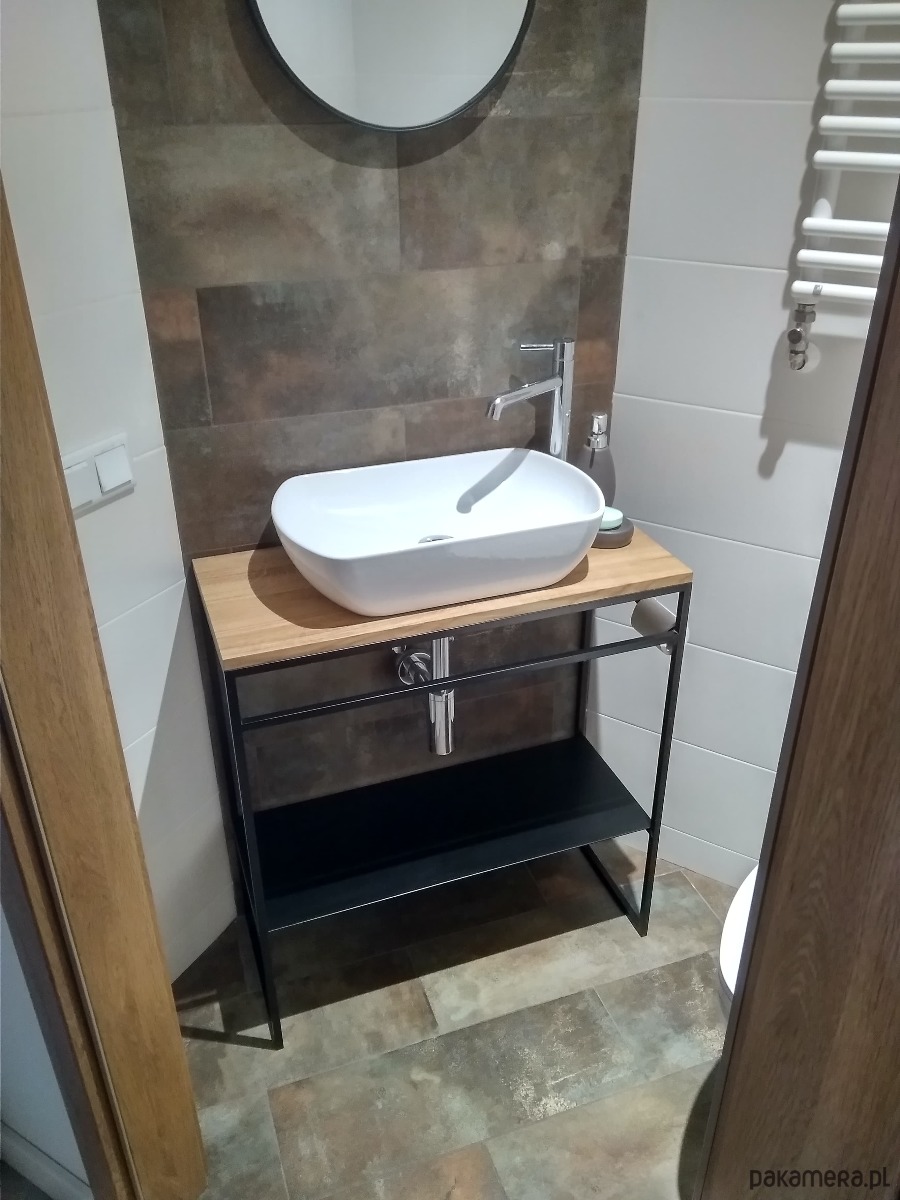 Konsola łazienkowa z dębowym blatem Czarna konsola pod umywalkę DEK FRONT