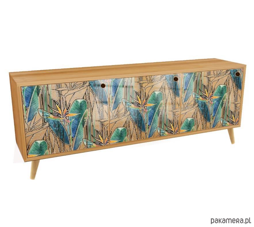 Zakrocka Design - ręcznie tworzona komoda 3 drzwiowa w stylu MId-century z laminowanym malunkiem tłoczonym w drewnie