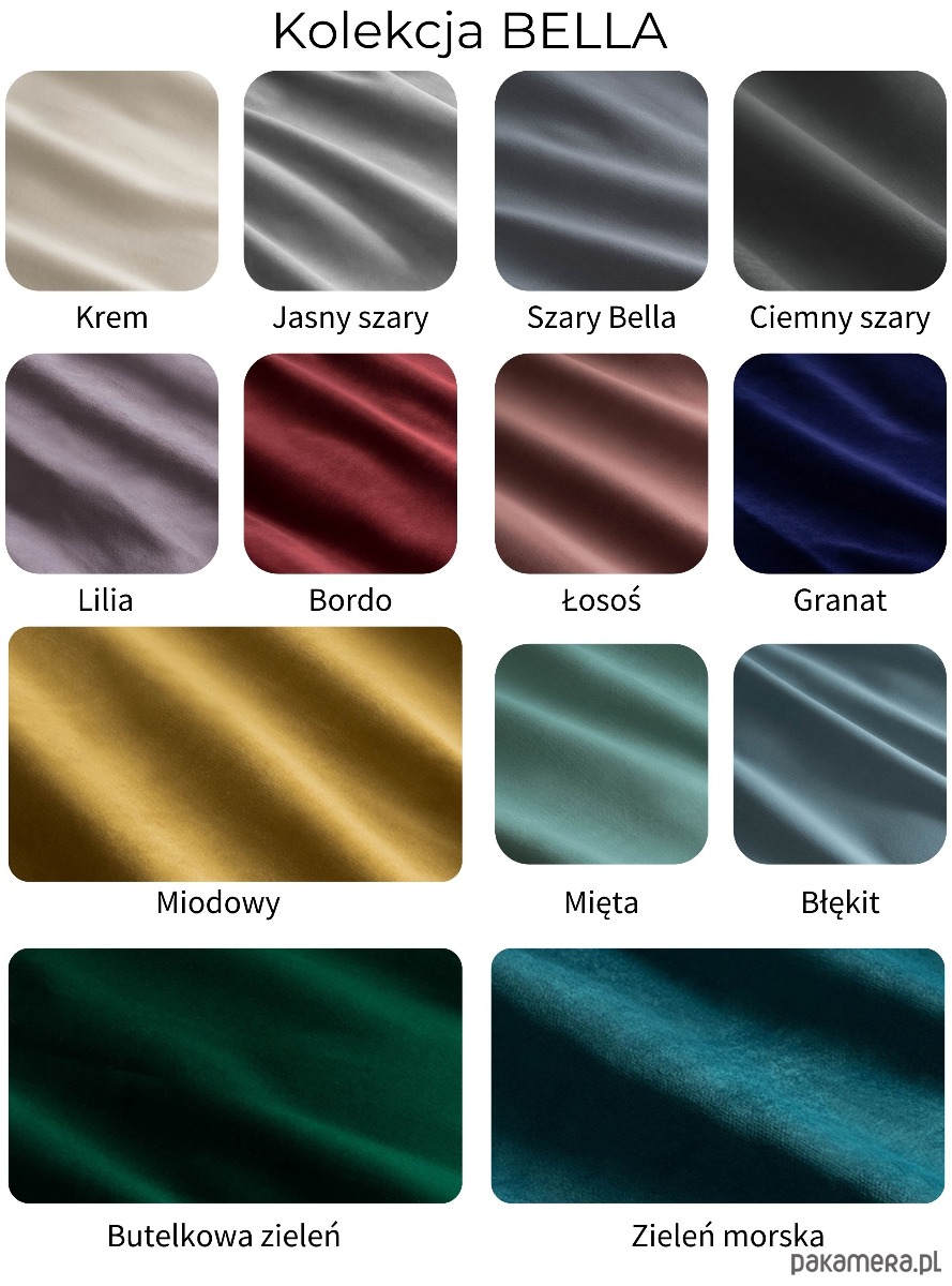 Welurowa tkanina o wysokiej odporności na ścieranie, lekko połyskująca, miękka i miła w dotyku. Odporna na wchłanianie wilgoci, plamoodporna i trudnopalna kolekcja. Wyprodukowana w technologii "CLEANABOO". Kolory przyciągają wzrok, są żywe i mocno nasycone.