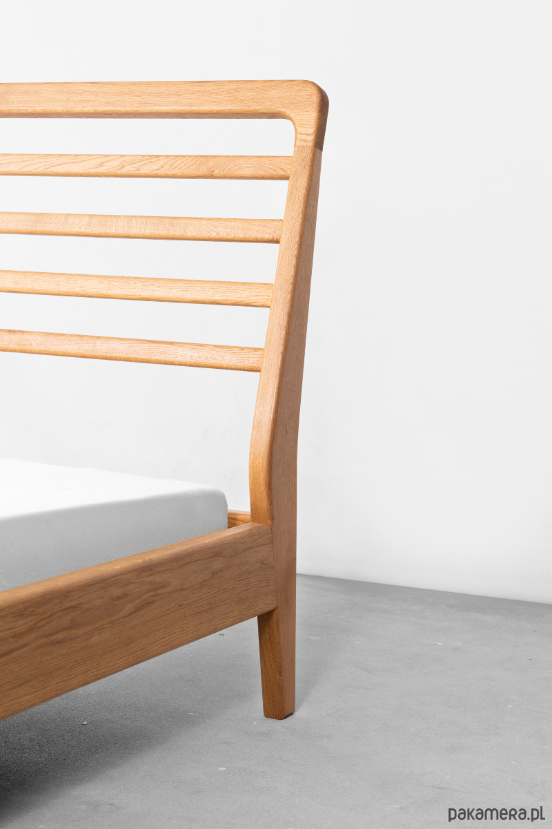 Kwintesencja filozofii minimalizmu. Proste i komfortowe łóżko o klasycznych liniach. Solidna dębowa konstrukcja sprawdzi się w każdej sypialni. Mebel charakteryzuje się funkcjonalnością i ergonomicznością. Jest przykładem na to, iż prosta forma w połączeniu z najwyższą jakością wykonania zaskakuje swoim potencjałem.