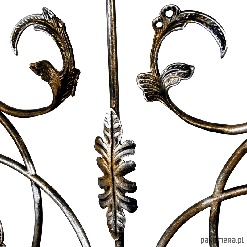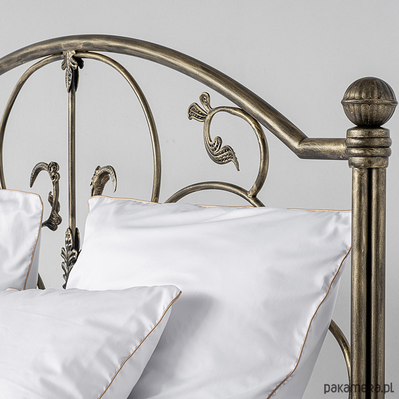 SALOMON to duże łóżko o bardzo bogatym i interesującym wzornictwie. Ciekawy motyw roślinny z pewnością przykuwa uwagę a charakteru dodaje możliwość wyboru niecodziennego koloru jakim jest patyna w kolorze złotym, srebrnym lub miedzianym. Oferujemy również łóżko w czarnym kolorze który jest uniwersalny pod względem aranżacji.