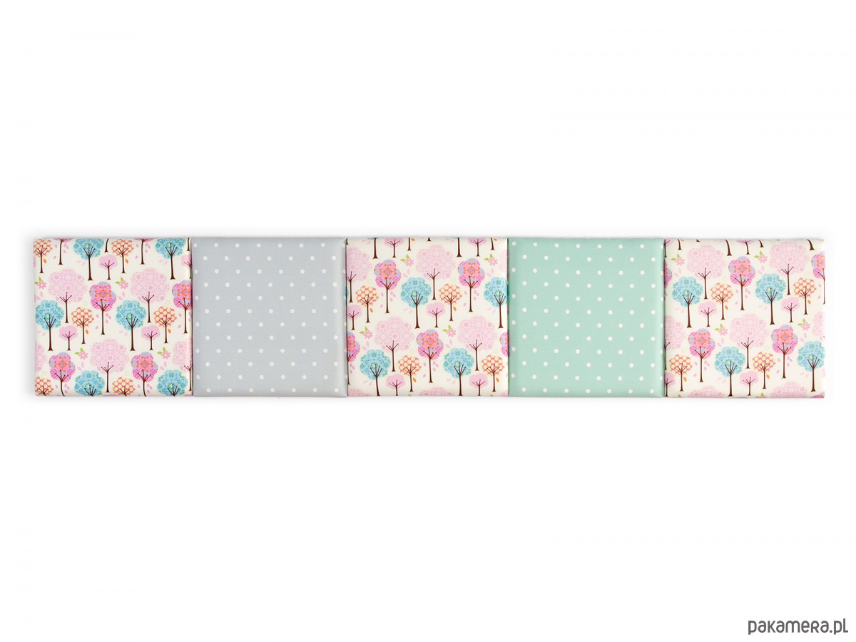 Zagłówek modułowy made for bed z 5 modułów kwadratowych 42 x 42 cm, Kolor: różowy, miętowy, bladoniebieski, wielokolorowy Materiał: bawełna 100% Moduł na bazie profilowanej ramki mdf, gąbka tapicerska. Wymiary po skręceniu: szerokość ok. 211,5cm, wysokość ok 42cm, grubość ok 6cm. Wszystkie akcesoria do montażu i powieszenia na ścianie w komplecie. Łatwy i szybki montaż. Możliwe inne kolory i rozmiary