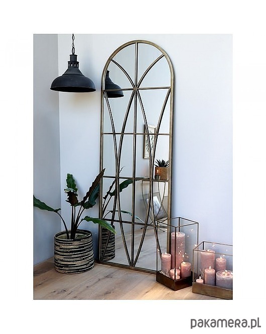 Niezwykłe lustro o wysokości aż 180 cm. W metalowej ramie. Ze szprosami. Celowo postarzane.