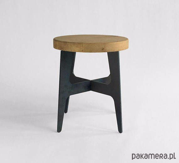 Jedyny w swoim rodzaju solidny stołek wykonany z drewna dębowego i stalowych nóg. Świetnie sprawdzi się również jako stolik nocny.