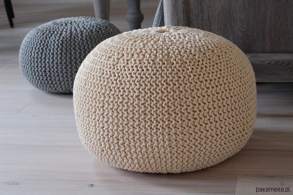 Pufa wykonana z naturalnego sznurka bawełnianego, wykonana ręcznie. Wysokość 40 cm, obwód 160 cm. Pufa wypełniona specjalnym granulatem sprężystych kulek o bardzo wysokiej gęstości, które gdy na nich usiądziesz wypierają się nawzajem, daje to niesamowity efekt relaksu i odprężenia. Wkład wykonany z bawełny 100%.Pufa to idealne rozwiązanie jako dodatkowe siedzisko a przy tym spełnia funkcję dekoracyjną. Dobrze się również sprawdza jako stolik nocny przy łóżku.