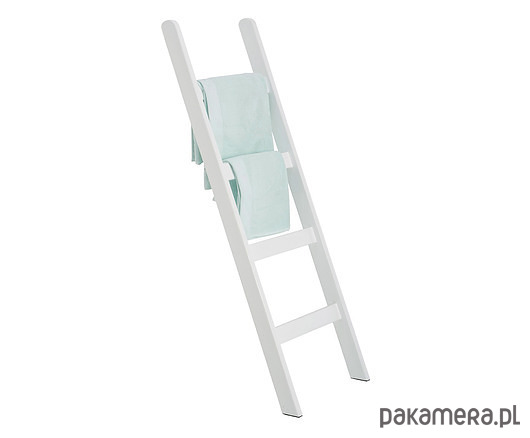 Drabina dekoracyjna w kolorze białym. Wykonana w 100% ręcznie z najwyższej jakości drewna sosnowego. Może stanowić stylowe wykończenie twojej łazienki. Idealnie sprawdzi się jako wieszak na ręczniki. Specjalnie zabezpieczona przed wilgocią.