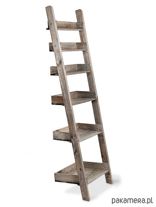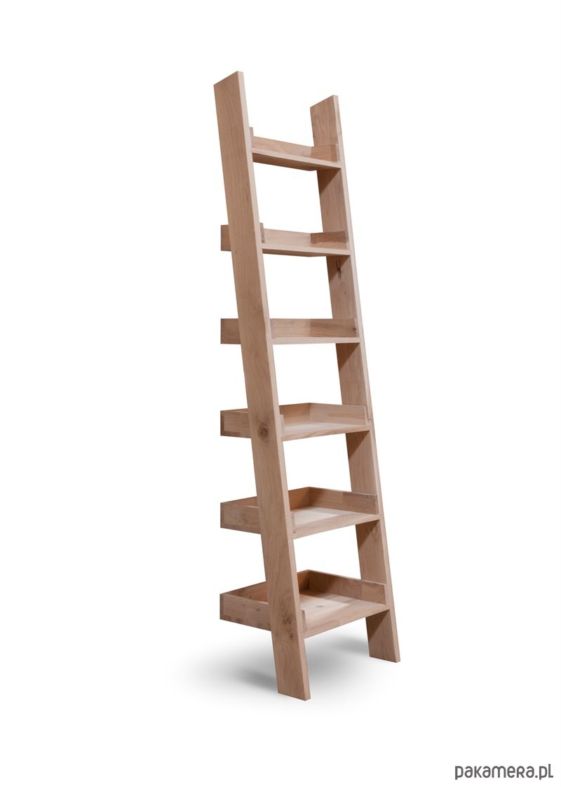 Najniższa półka drabiny ma głębokość 40 cm, każda kolejna półka jest węższa o 5 cm.