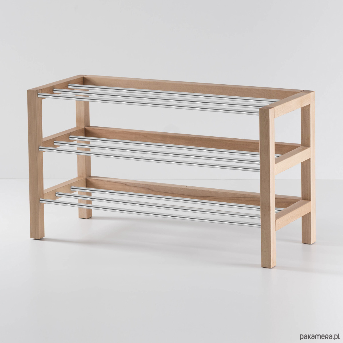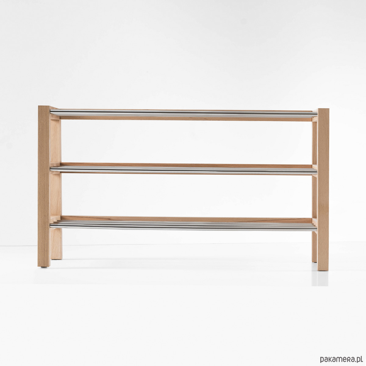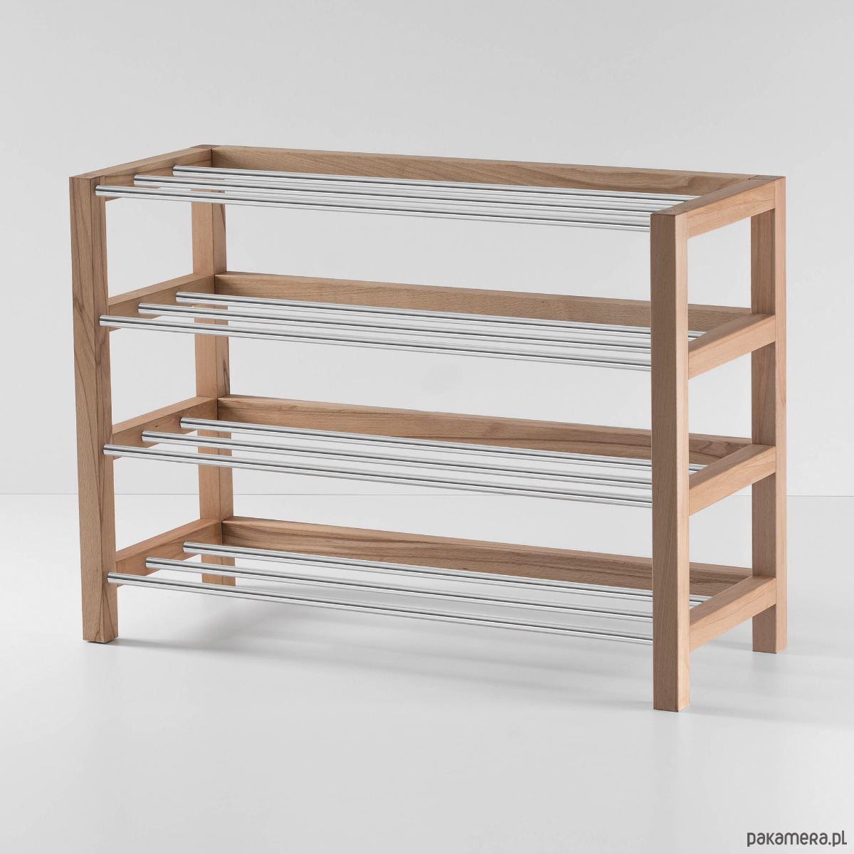 Ręcznie produkowany regał na buty powstaje z elementów starannie wysuszonego drewna bukowego, co gwarantuje spójność całego mebla nawet po wielu latach. Łączniki wchodzą w reakcję z klejem i rozprężają się… Mówiąc krótko: ten regał będzie Ci służyć znacznie dłużej niż całe kolekcje butów. My zadbamy jeszcze o inne detale, na przykład o zaokrąglenie ostrych krawędzi i filcowe zabezpieczenie od spodu, a Ty zdecyduj, ile półek, jaką szerokość i jaki kolor będzie mieć Twój regał.