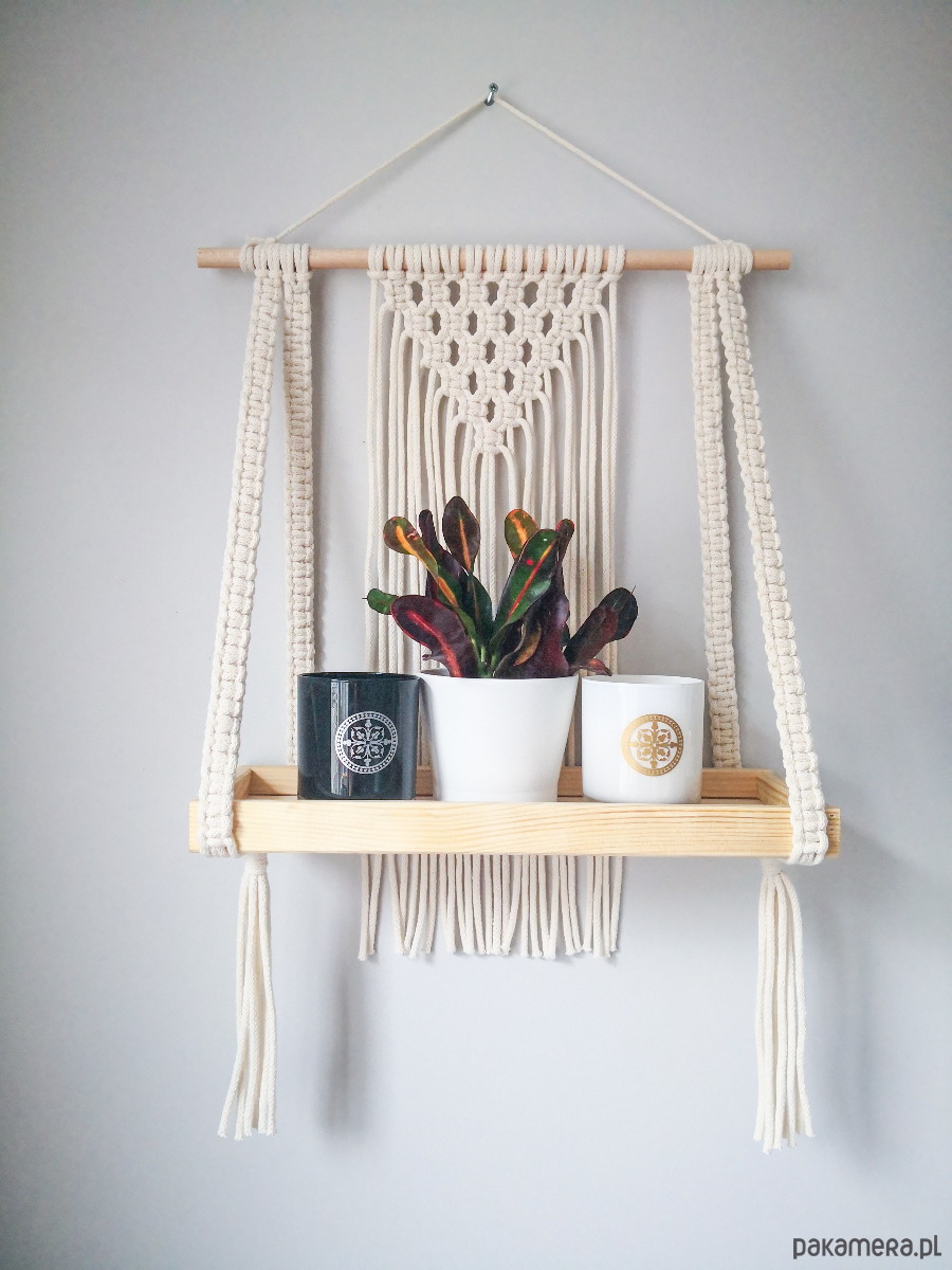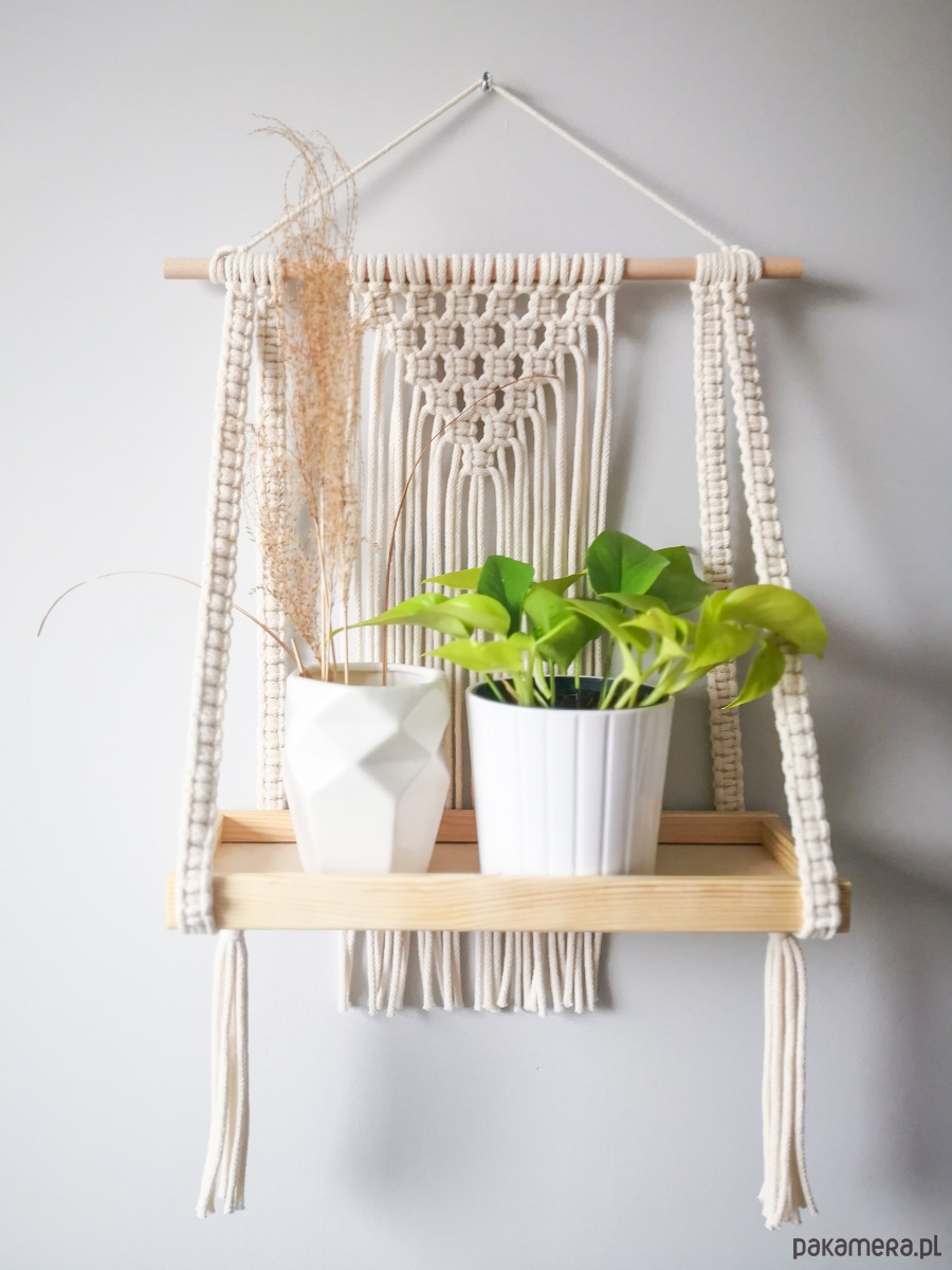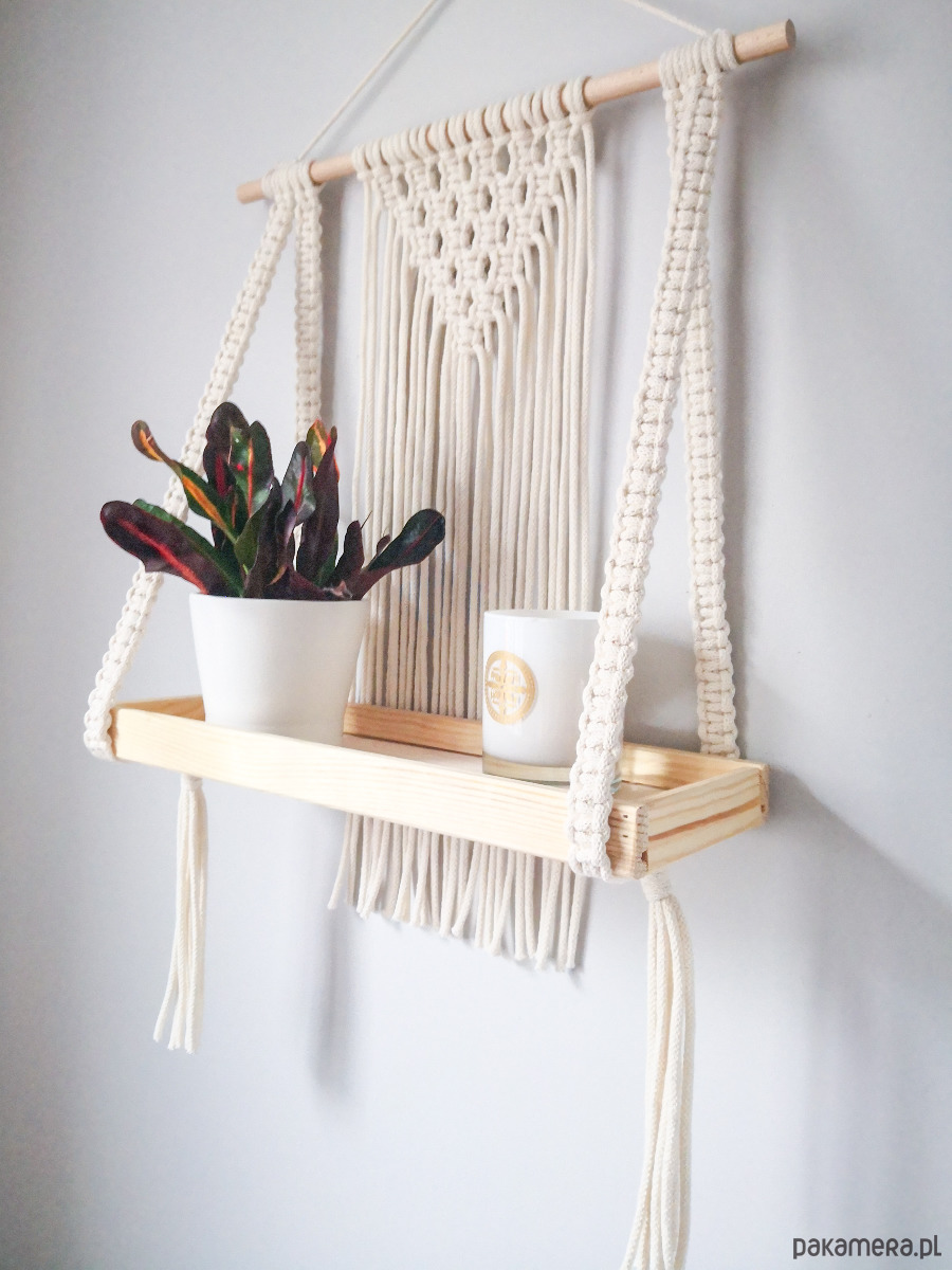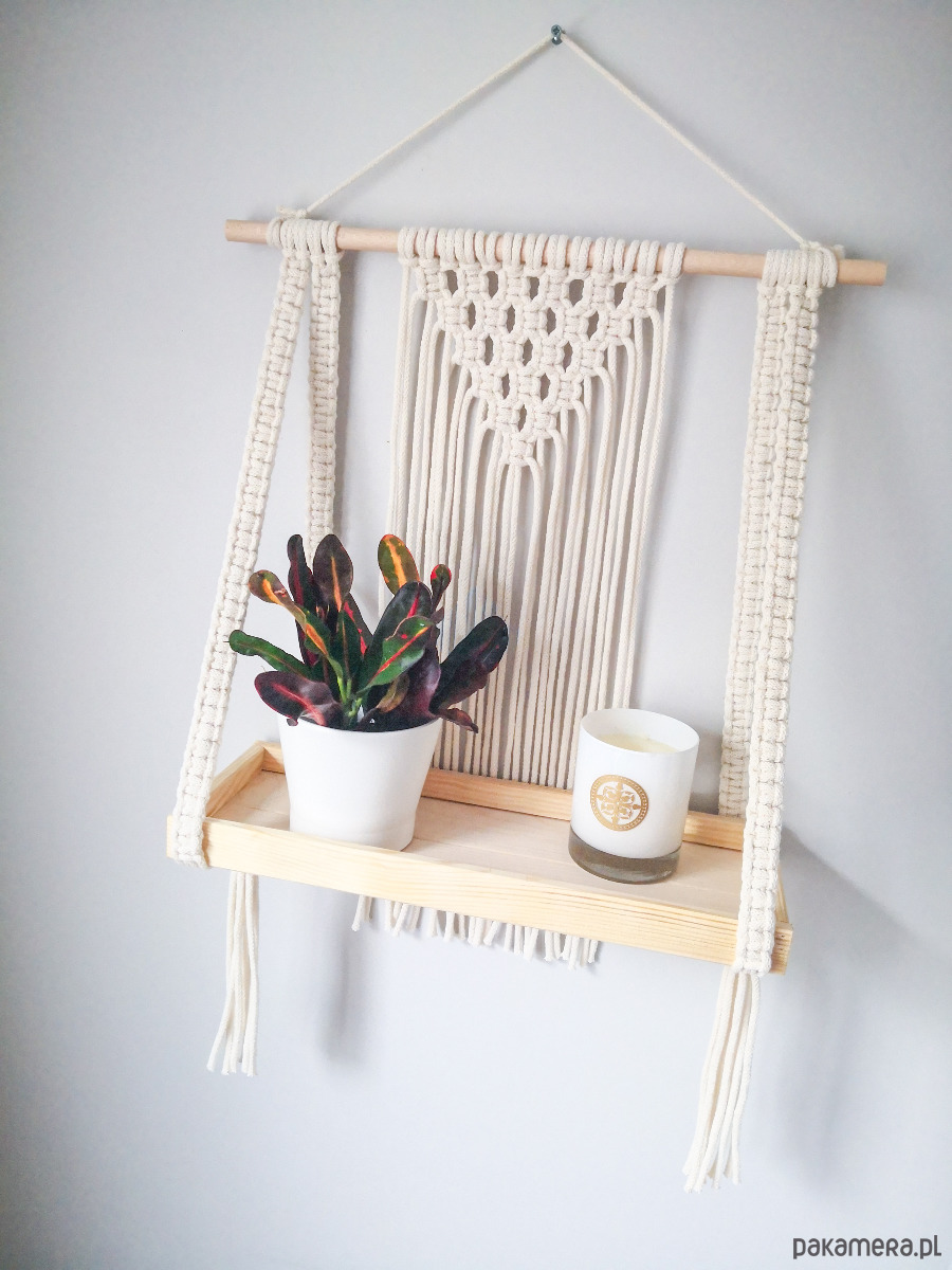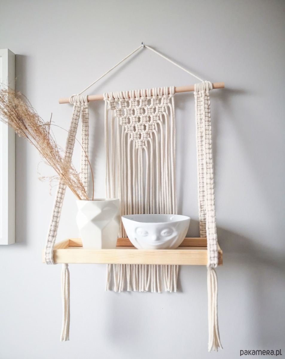 W prostocie siła! Prosta, a dzięki temu szalenie dekoracyjna półka z makramą wykonana została własnoręcznie z bawełnianego sznurka (5 mm) w kolorze naturalnym/ecru.