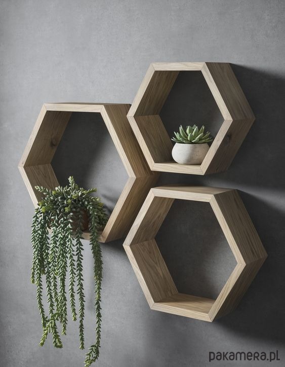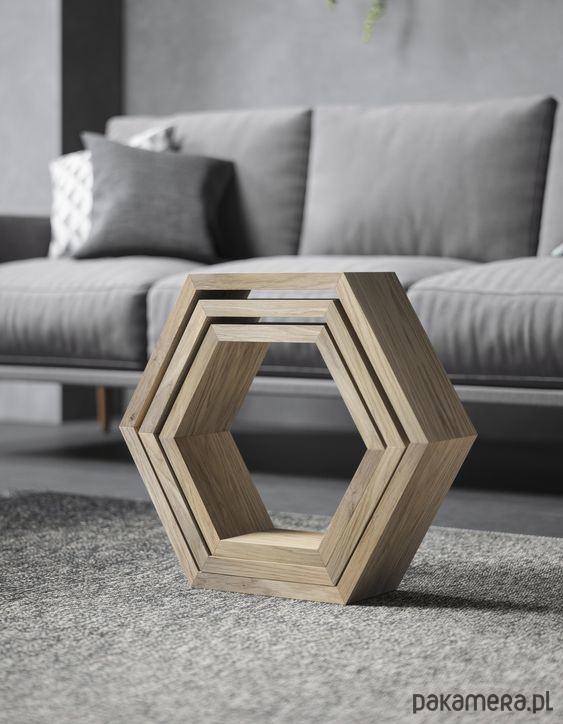 Drewniana półka w kształcie heksagonu . Ręcznie robiona z dębu.