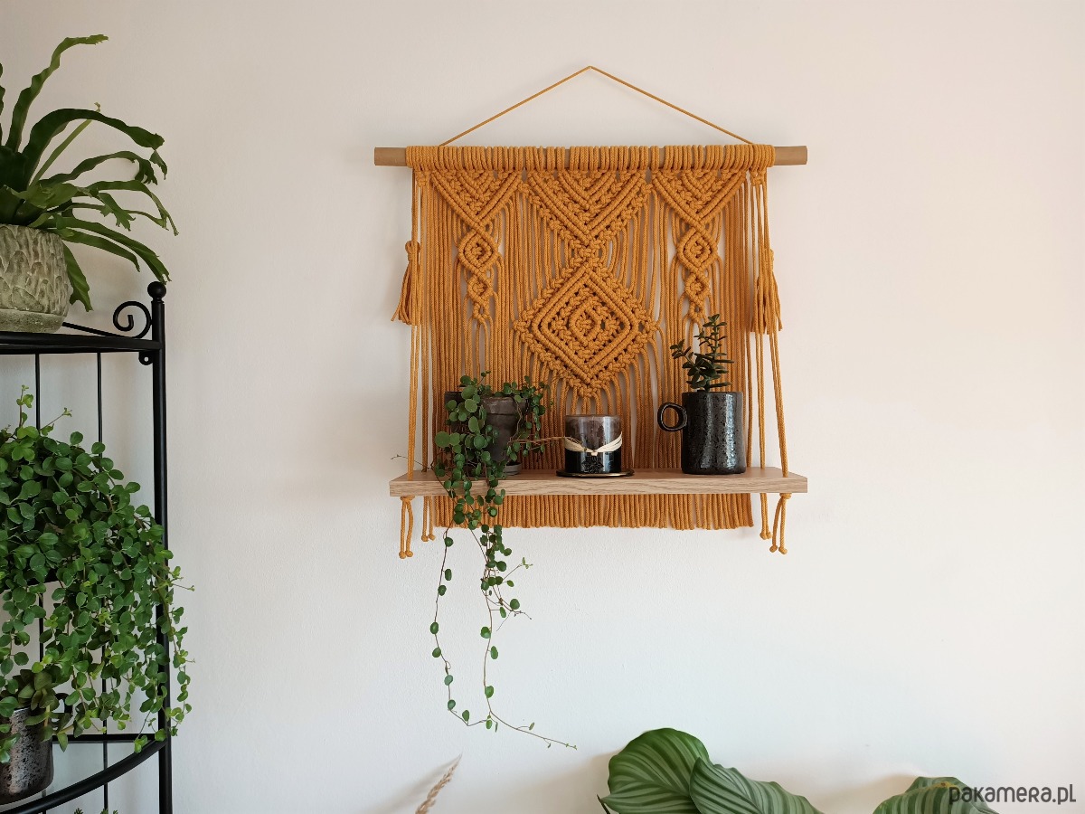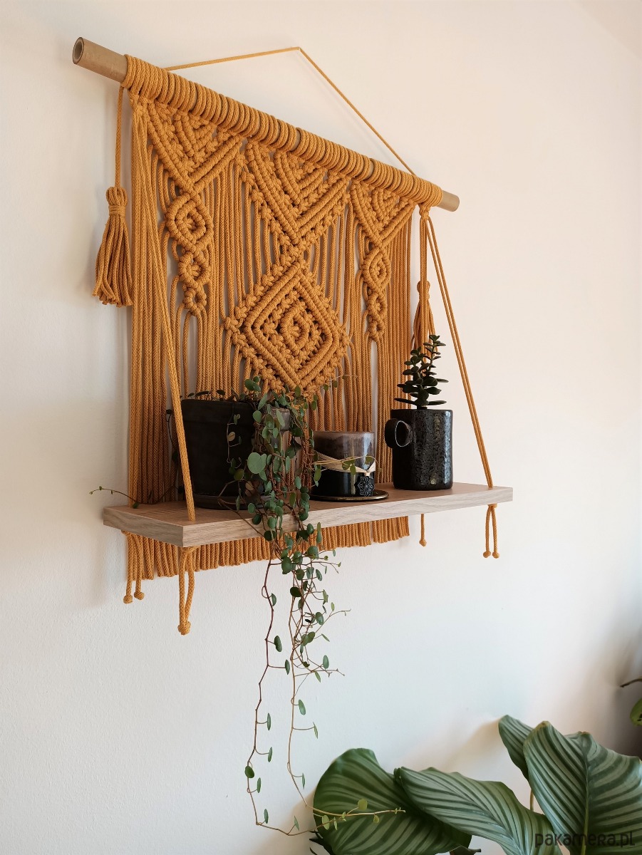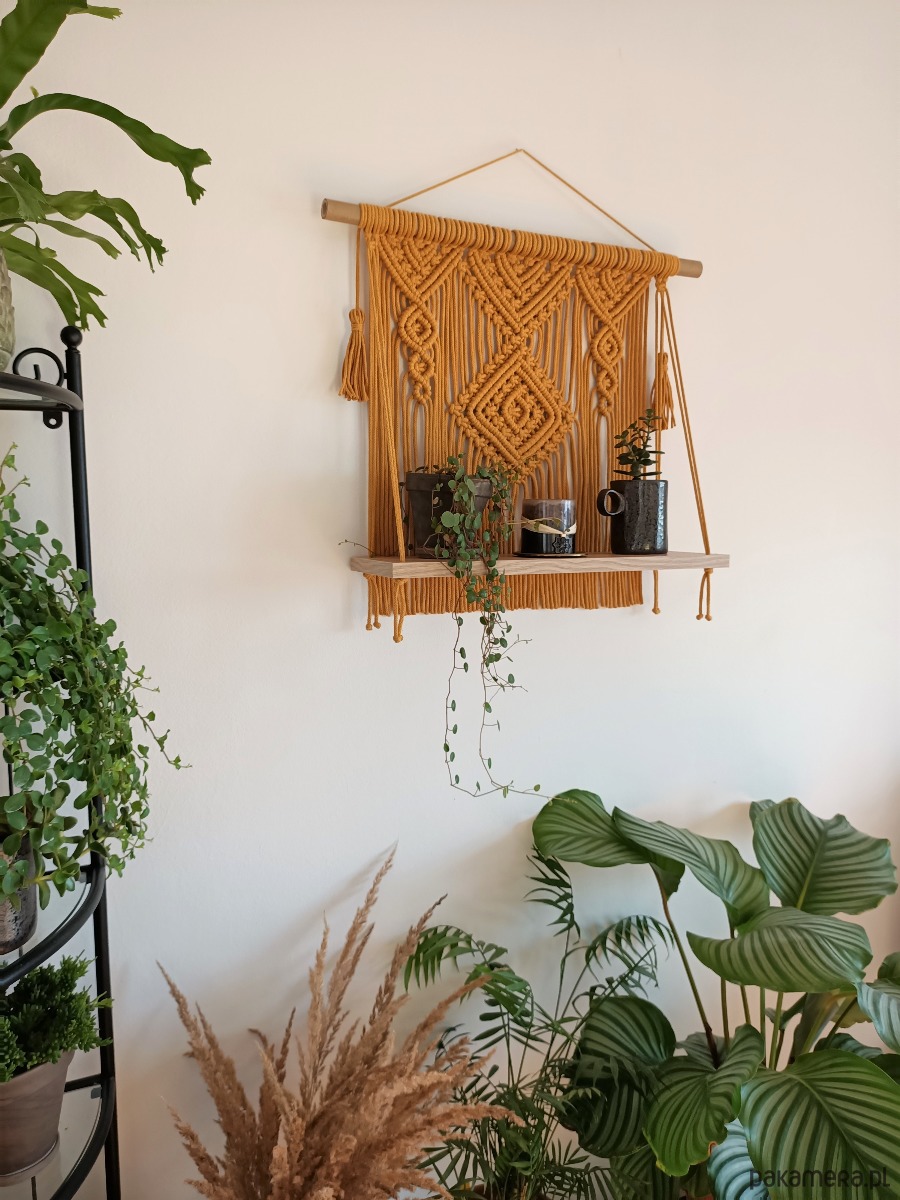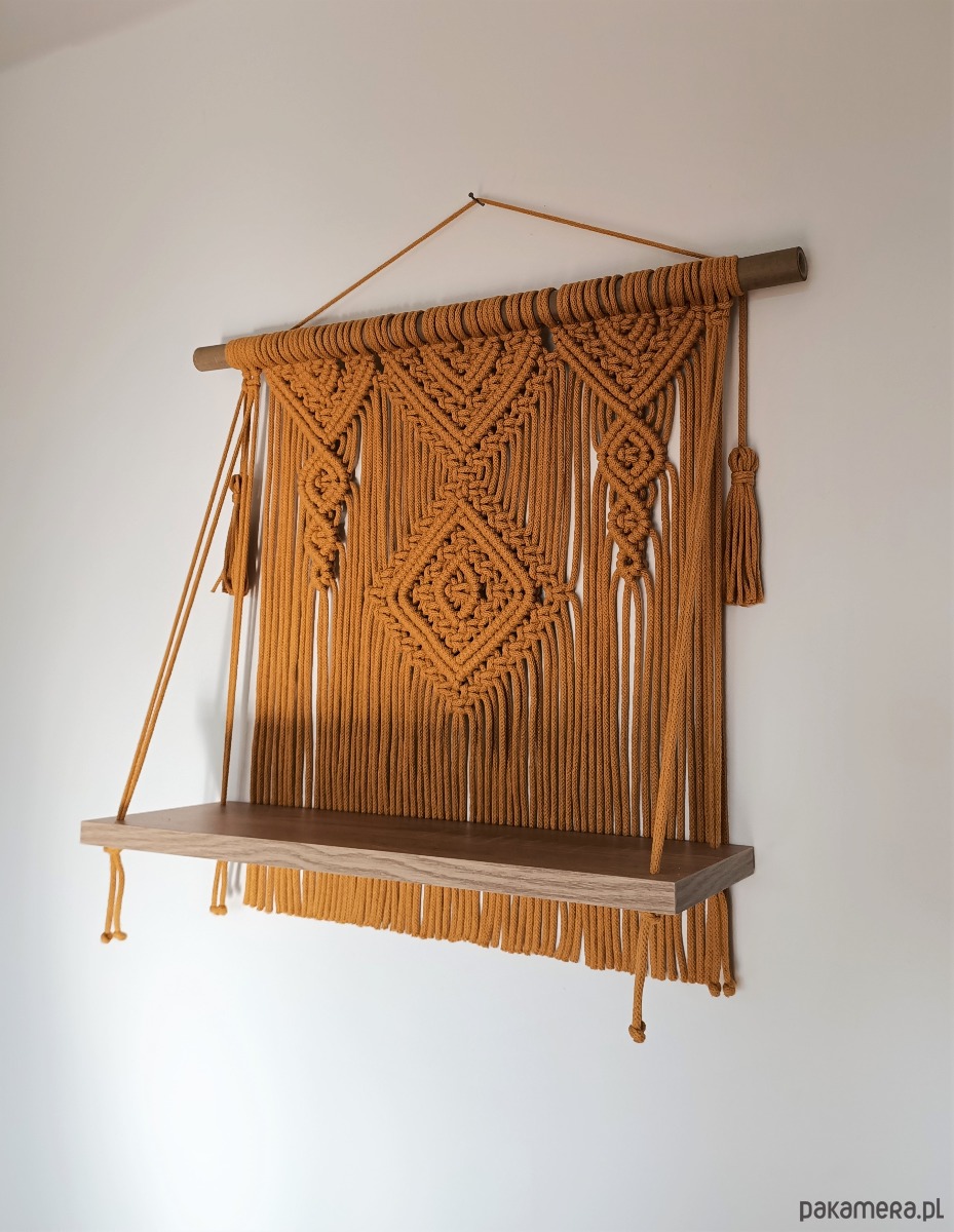 Piękna, wykonana ręcznie półka doda charakteru każdemu wnętrzu. Pasuje idealnie do stylu boho, skandynawskiego lub rustykalnego.
