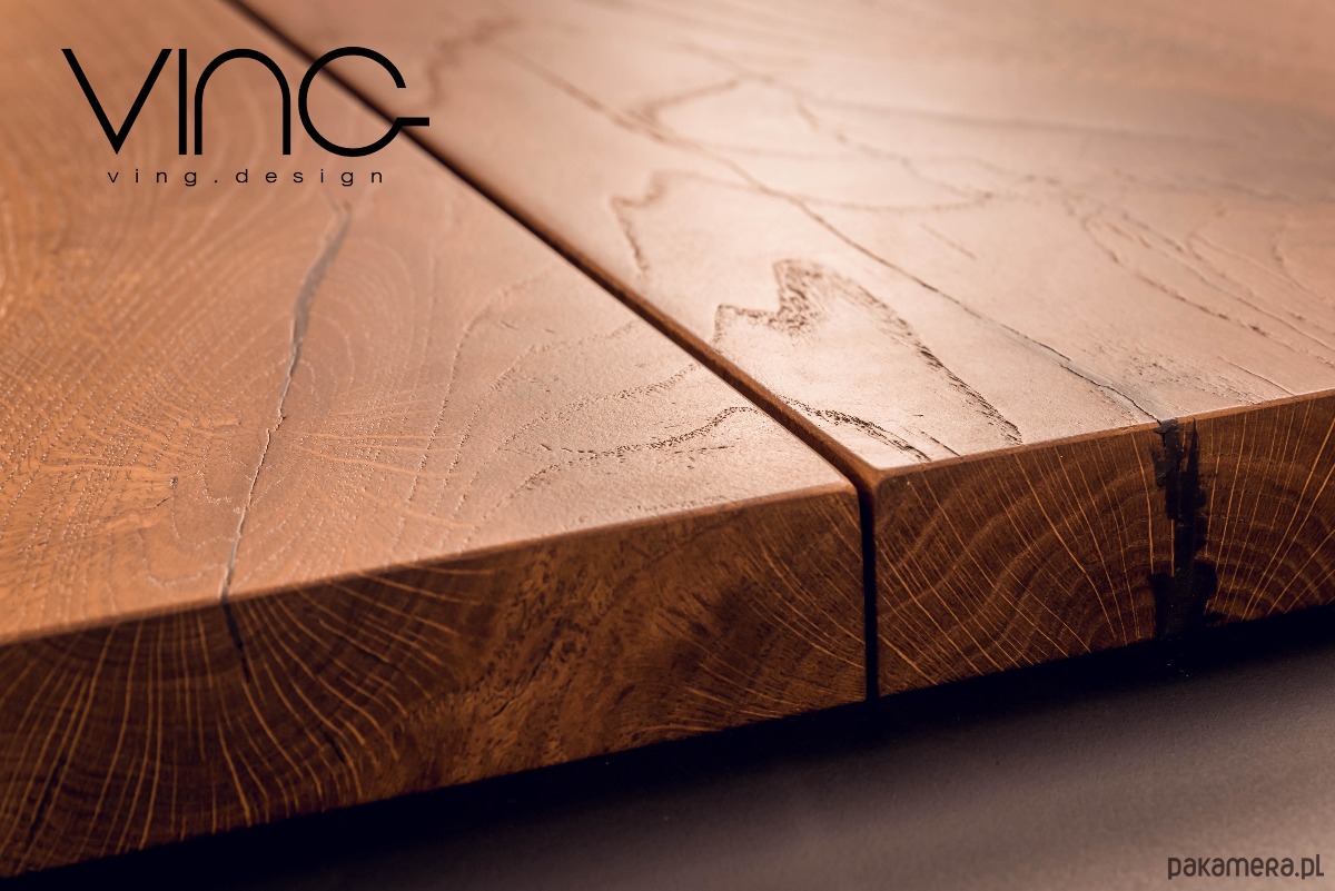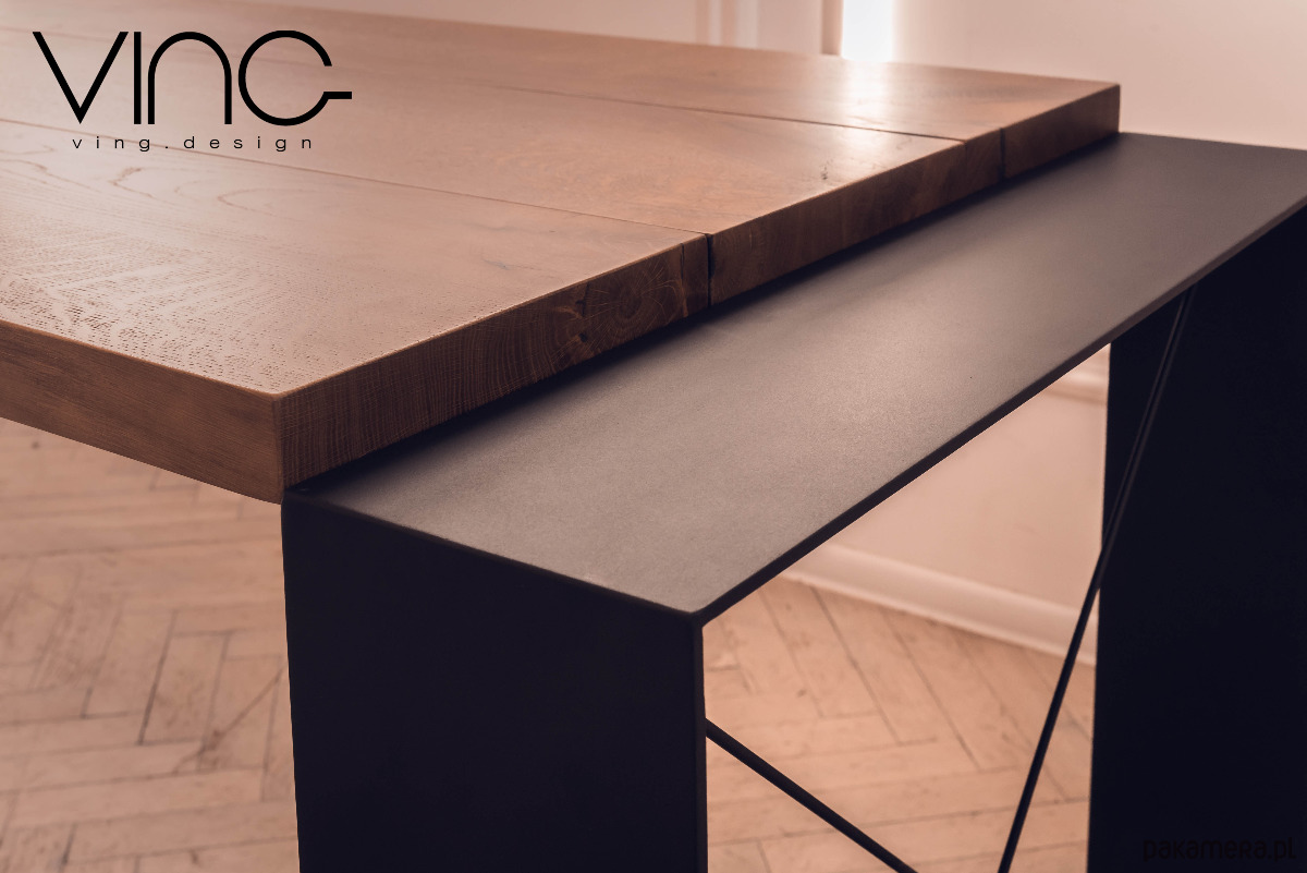 Grubość blatu to 43 mm co zapewnia kompromis pomiędzy linią dizajnu oraz wytrzymałością stołu.