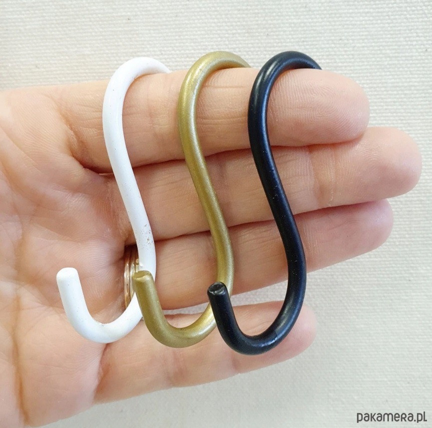 Najbardziej pożądany w ostatnim czasie model haczyka na ubrania, akcesoria do przechowywania. Niezwykle modny i ponadczasowy model w kształcie litery S. Wykonany z metalu w kolorze czarnym. Pasuje do każdego typu mieszkań – od boho po nowoczesne. Znajdzie zastosowanie również w klimatycznych kawiarniach lub poczekalniach. Doskonale nadaje się do powieszenia na rurce w ilości kilku sztuk. Pięknie wykonany, przydatny i dekoracyjny pomysł na prezent. Dostępny w kilku rozmiarach.