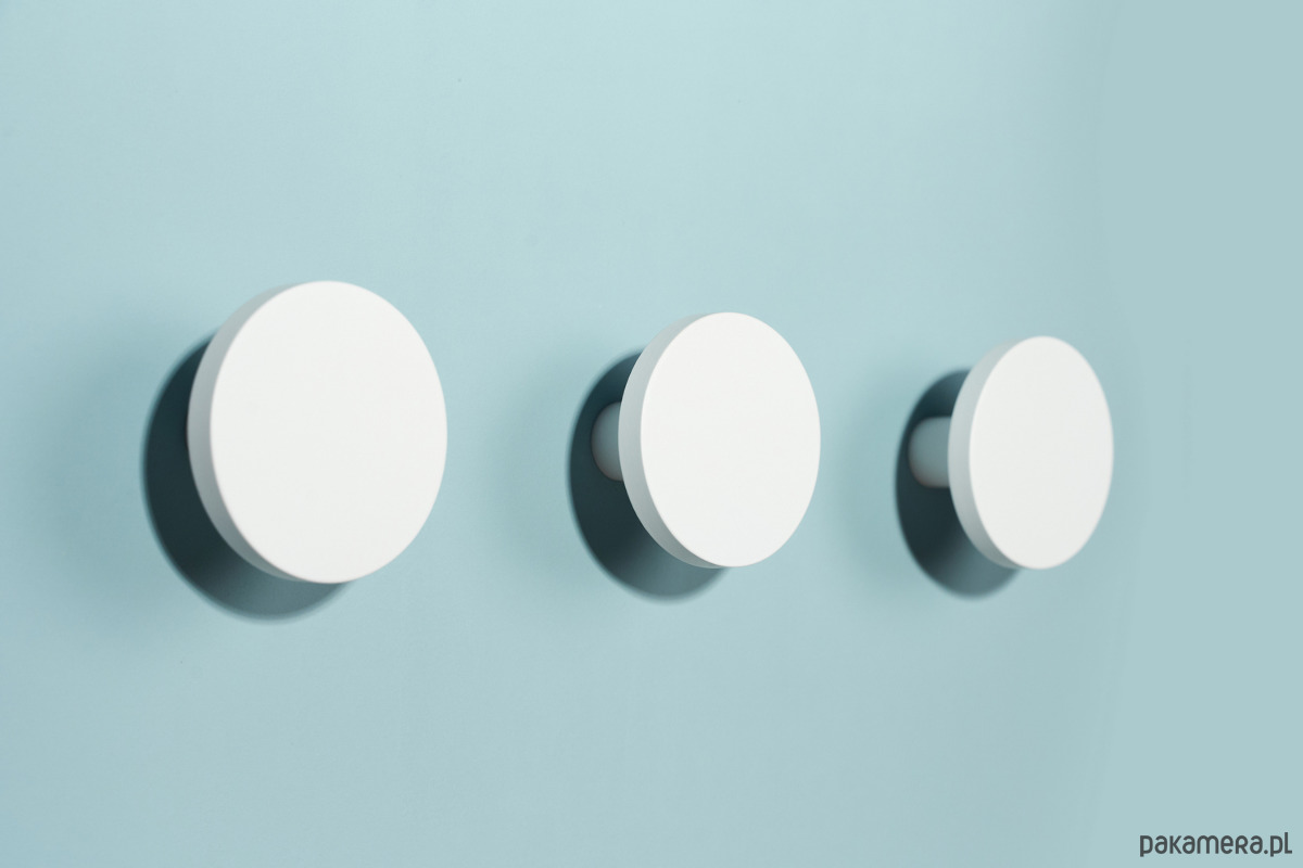 Duże i małe okrągłe białe haczyki ścienne