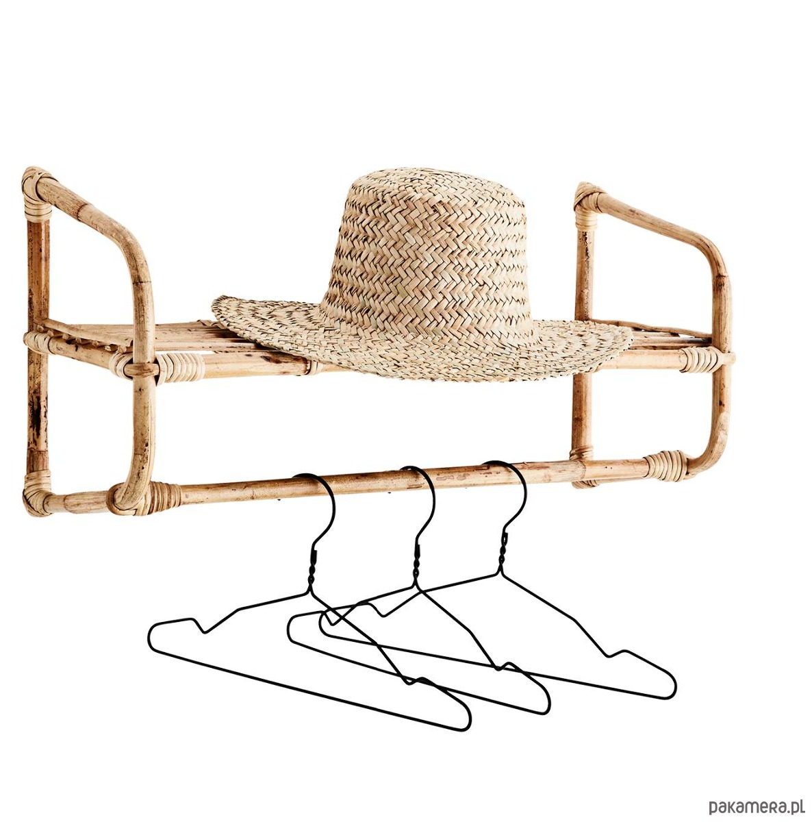 Ścienny wieszak wykonany z bambusa. Posiada dwie pojemne półki na szaliki, czapki, apaszki. Wykończenie w modnym i naturalnym kolorze. Sprawdzi się jako dodatek do przedpokoju, łazienki lub poczekalni. Produkt wykonany ręcznie, w 100% naturalny. Odmieni Wasze wnętrze nadając mu niepowtarzalny charakter. Polecany jako prezent.
