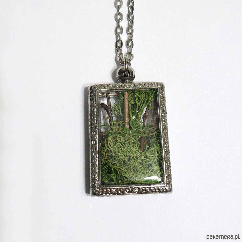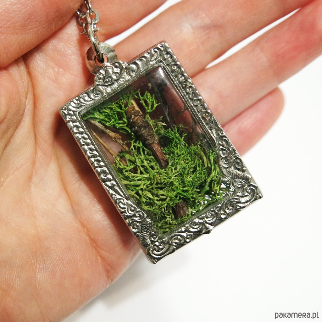 Medalion z kompozycją z mchu i gałązek.