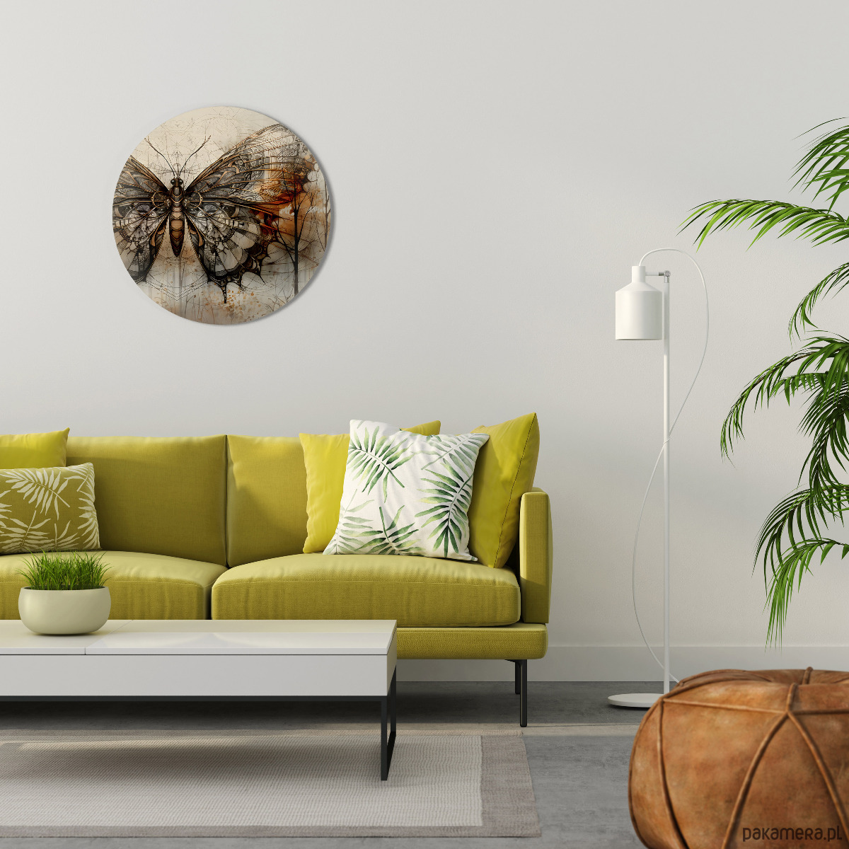 Wprowadź do swojego wnętrza wyjątkowy charakter dzięki eleganckiemu okrągłemu obrazowi. To nowoczesna dekoracja ścienna, która idealnie komponuje się z różnymi stylami aranżacji – od minimalistycznych, przez klasyczne, aż po boho.