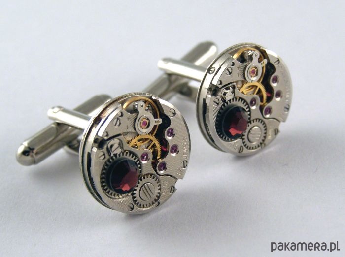 Wyjątkowe spinki do mankietów wykonane z oryginalnych mechanizmów zegarkowych i kryształków Swarovskiego w eleganckim, srebrnym wykończeniu. Idealne połączenie klasyki i industrialnej estetyki.
