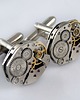 Wyjątkowe spinki do mankietów wykonane z oryginalnych mechanizmów zegarkowych w eleganckim, srebrnym wykończeniu. Idealne połączenie klasyki i industrialnej estetyki.
