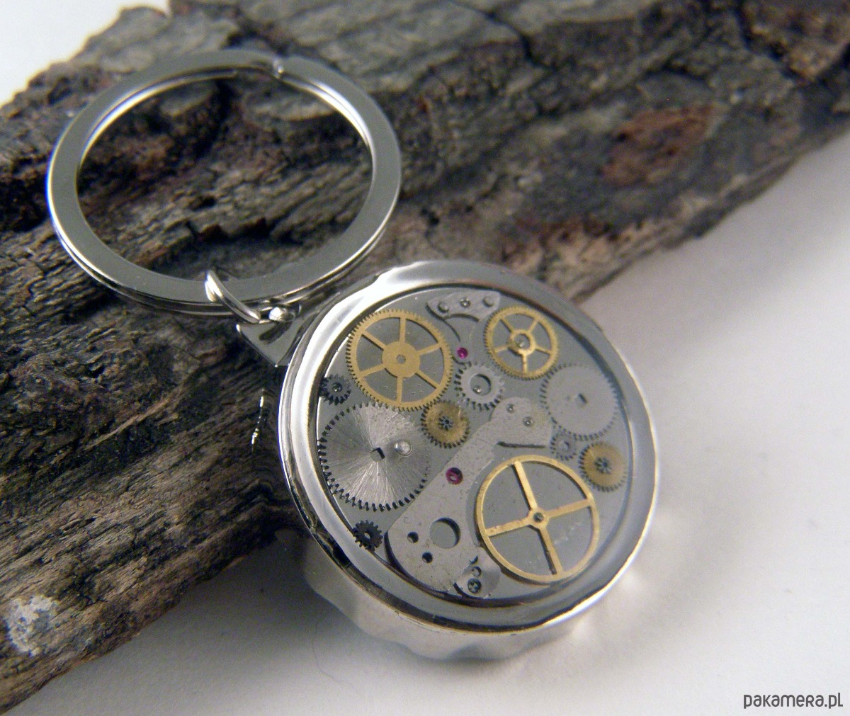 Oryginalny brelok w klimacie steampunk, łączący metal, żywicę i oryginalne części zegarka mechanicznego. Wyposażony w funkcjonalny otwieracz do butelek, jest zarówno praktycznym, jak i wyjątkowym dodatkiem. Jego unikalny design z pewnością wyróżni go wśród innych akcesoriów.