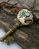 Kluczyk z mosiądzu, ozdobiony autentycznym zegarkowym mechanizmem i kryształkiem Swarovskiego.