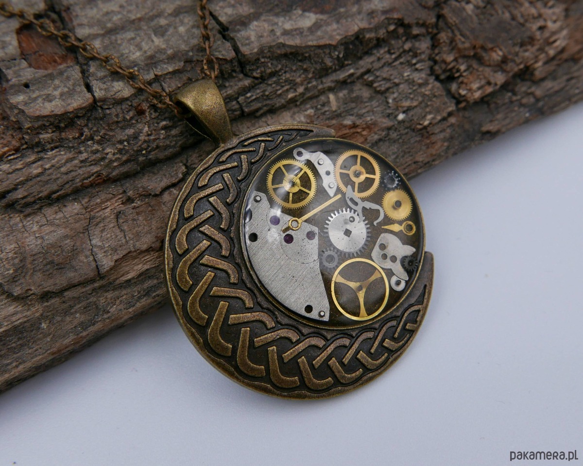 Naszyjnik wykonany z mosiądzu, ozdobiony zębatkami zegarkowymi zatopionymi w żywicy. Subtelne, industrialne detale nadają biżuterii unikatowy charakter, a zabawny motyw sprawia, że to idealny dodatek nie tylko dla wielbicielek Sailor Moon.