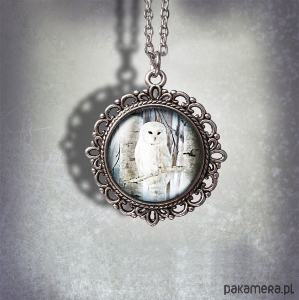 Medalion - Biała sowa - romantyczny