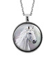 Średnica medalionu ok. 3,2 cm, średnica miniaturki grafiki 3 cm, długość łańcuszka ok. 80 cm.