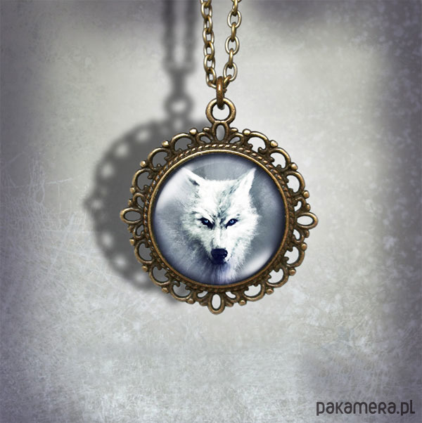 Medalion - Biały wilk - romantyczny, brąz