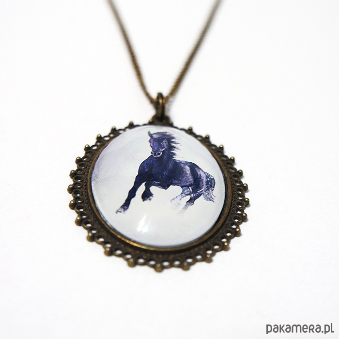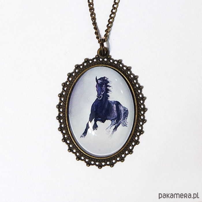 Medalion - Czarny koń 2 - brąz, owalny