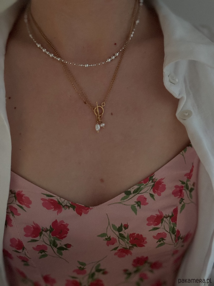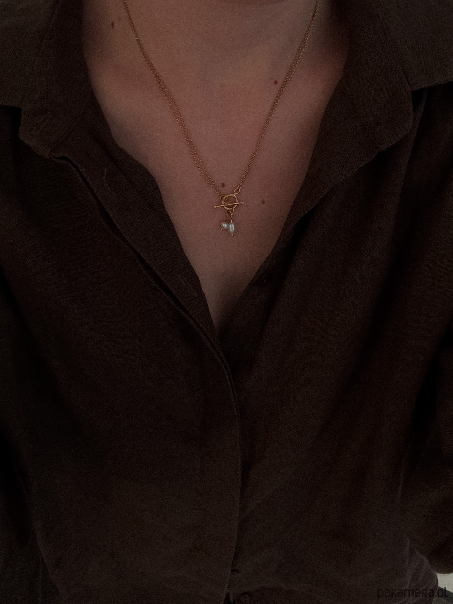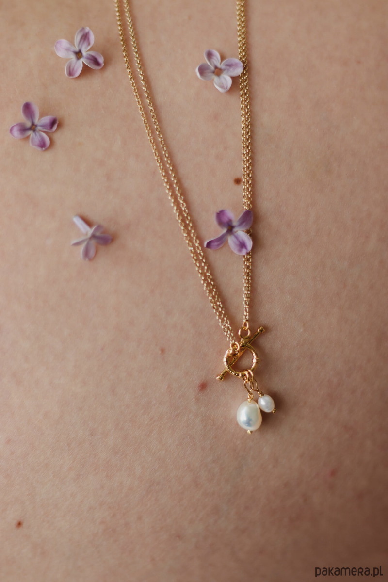 Naszyjnik inspirowany ciałem, jego nieregularnymi kształtami i asymetrycznościami. Jedną z inspiracji jest komentarz jednej z Was - "dwie perły kojarzą mi się z piersiami - jedną większą a drugą mniejszą, piękna natura!"