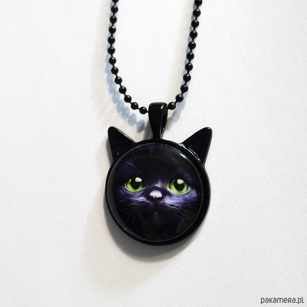 Medalion w kolorze czarnym, łańcuszek kulkowy.