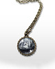 Średnica medalionu ok. 2 cm, średnica miniaturki grafiki 16 mm, długość łańcuszka ok. 46 cm.