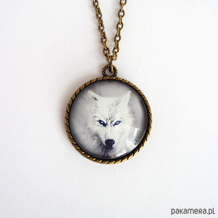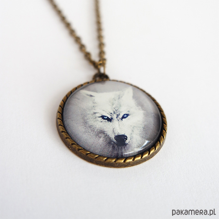 Medalion, naszyjnik - Biały wilk - antyczny brąz