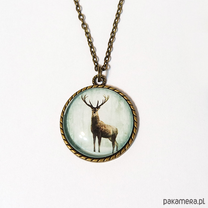 Medalion, naszyjnik - Jeleń 3 - antyczny brąz