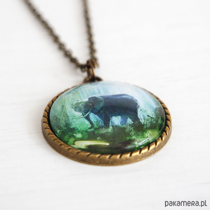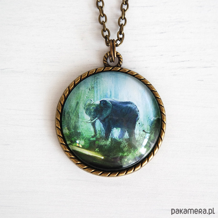 Medalion, naszyjnik - Słoń 2, dżungla - brąz