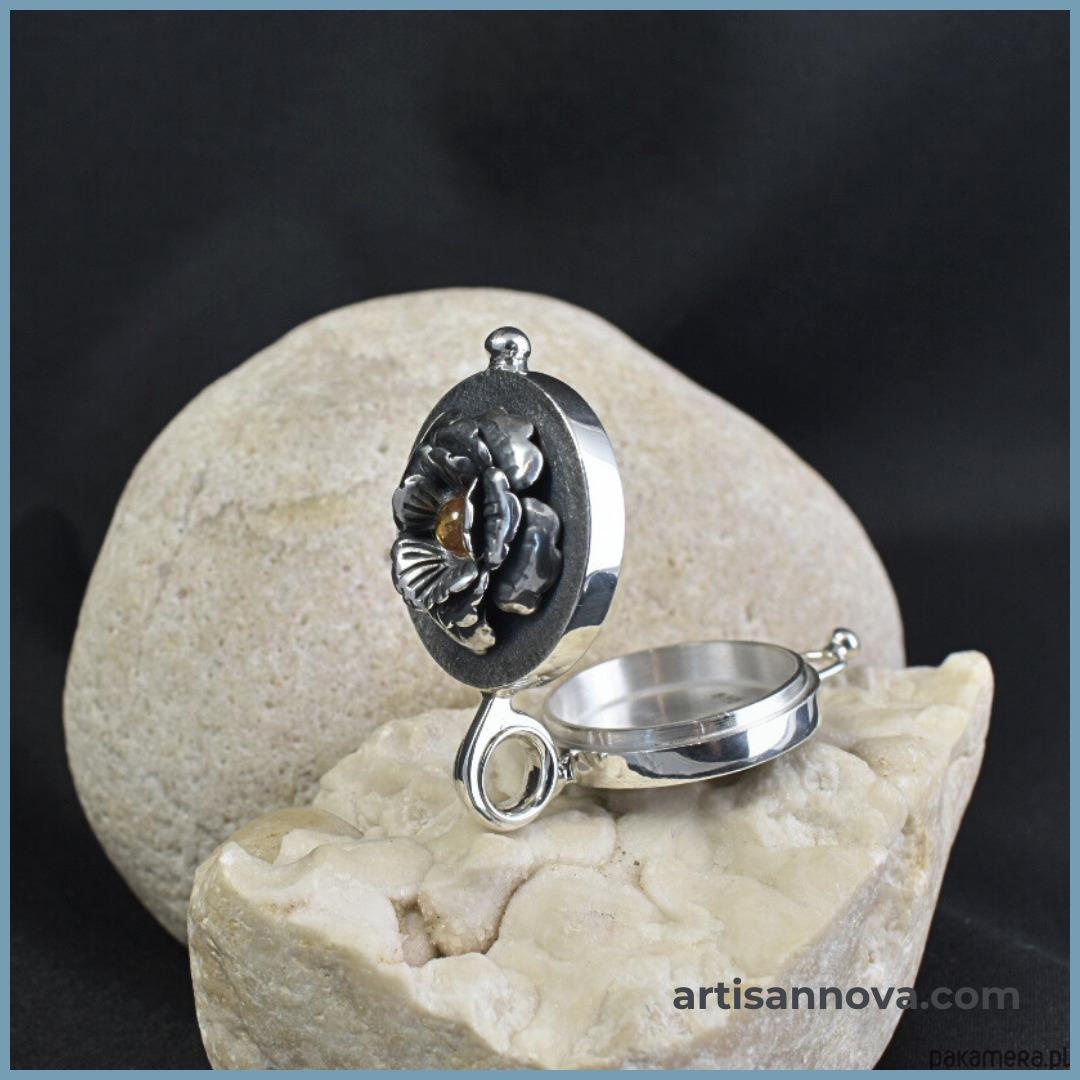 Medalion sekretnik srebrny z bursztynem bałtyckim