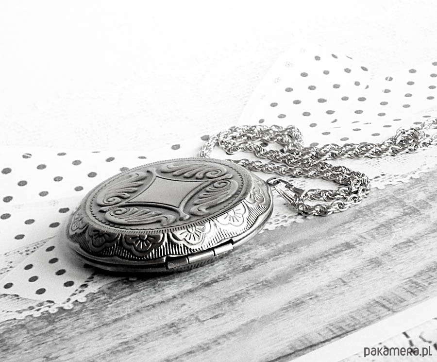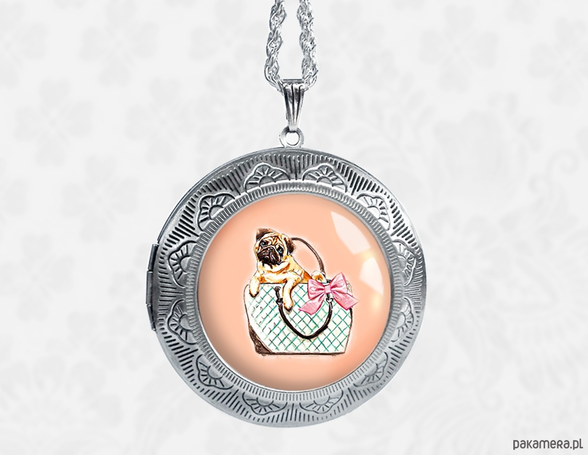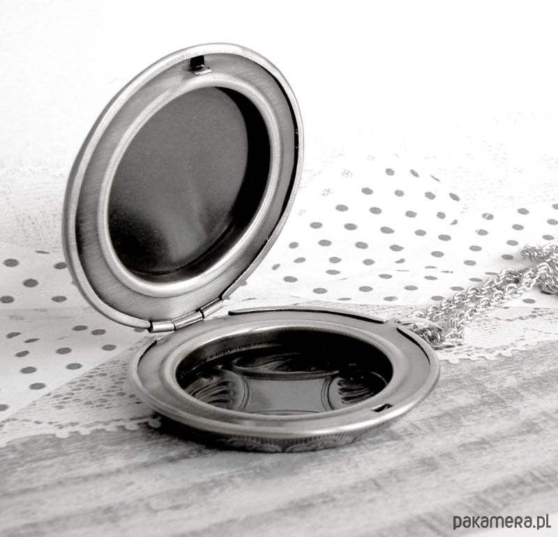 Efektowny, stylowy, otwierany medalion - sekretnik z oryginalną grafiką artystyczną zatopioną pod wypukłym szkłem w oprawie ze stali chirurgicznej ( szlachetnej). Wewnątrz medalionu miejsce na zdjęcie lub inny drobiazg. Biżuteria ta jest jedyna w swoim rodzaju i niespotykana, głównie dzięki szkłom z grafiką, które są unikatowe, wykonane ręcznie według mojego projektu.