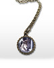 Średnica medalionu ok. 2 cm, średnica miniaturki grafiki 16 mm, długość łańcuszka ok. 46 cm.